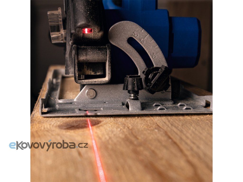 Pro ještě přesnější výsledky je pila vybavena paralelním dorazem, laserovým ukazatelem řezu a LED osvětlením, které perfektně osvětlí pracovní plochu. Snadnou výměnu kotouče umožňuje aretace vřetene. Rukojeť má měkčené protiskluzové zóny a díky prachové přípojce můžete pilu připojit k externímu odsavači a využít možnosti práce v bezprašném prostředí.
