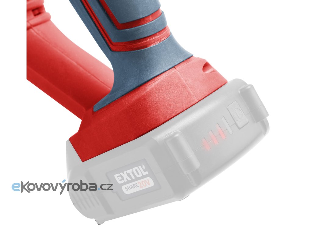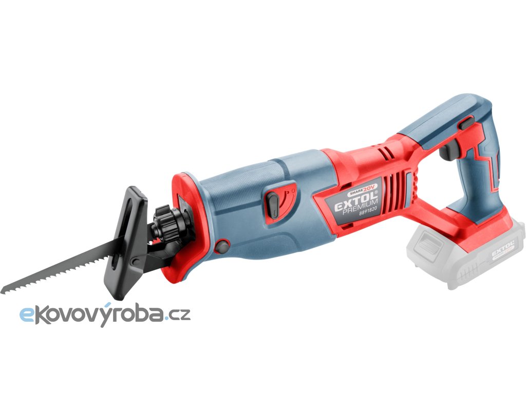 Aku pila ocaska je určena k řezání dřeva, umělé hmoty, kovů a jiných podobných materiálů při práci v dílně, garáži nebo na zahradě. Pružný pilový list umožňuje provádět nejen přímé a obloukové řezy, ale také řezy ve špatně přístupných místech (v rozích, podél zdi), prořezávání stromů. Hlavní výhodou této pily je akumulátorový pohon, který dovoluje si tuto pilu vzít s sebou tam kde s ní potřebujete pracovat, bez ohledu na to, jestli tam je rozvod elektrické energie. Pila má bezpečnostní pojistku proti náhodnému spuštění a je vybavena nastavitelným předkmitem, který si můžete upravit v závislosti na řezaném materiálu. Pro běžnou práci dostačují jeden nebo dva 2000mAh akumulátory, které můžete rychle nabít v rychlonabíječce, pro náročnější nebo delší práci doporučujeme větší akumulátory s kapacitou 4000–8000mAh. Akumulátor lze použít ve všech typech nářadí řady EXTOL SHARE20V. Díky použité Li-ion technologii je ho možné kdykoliv dobíjet, aniž by se tím snižovala jeho kapacita. Li-ion akumulátor ztrácí energii vlivem samovybíjení velmi pomalu a vydrží dlouho nabitý a připravený k použití.
