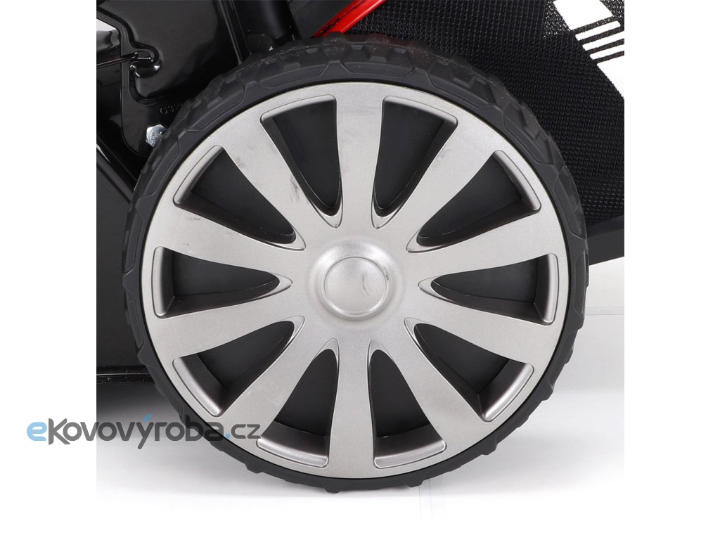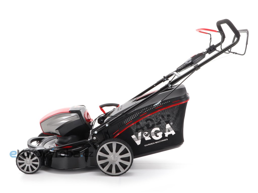 Tyto poslední funkce se používají převážně na přerostlou trávu. Velká zadní pojezdová kola i přední kola jsou uložena v oboustraných kuličkových ložiscích, centrální nastavení výšky sečení je u značky VeGA také samozřejmostí.
