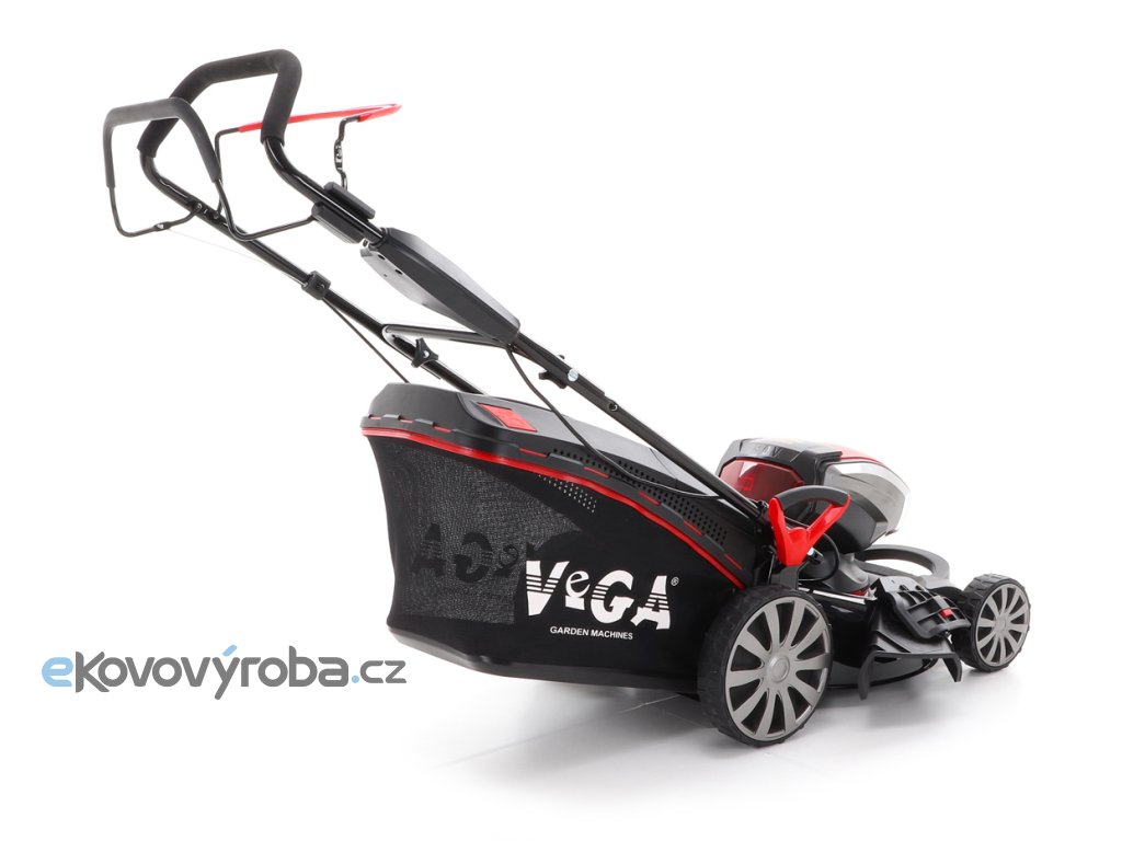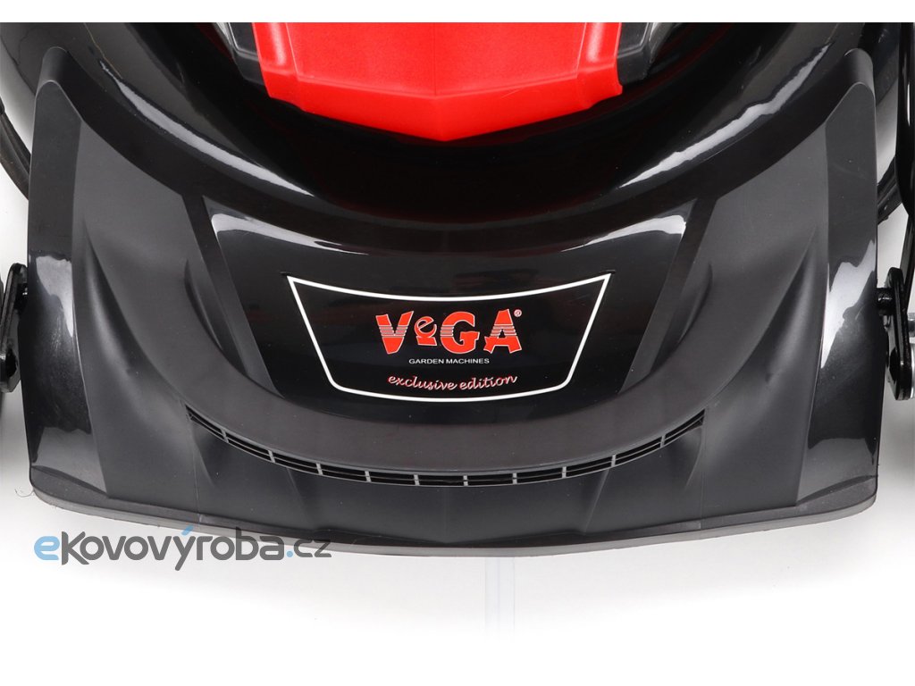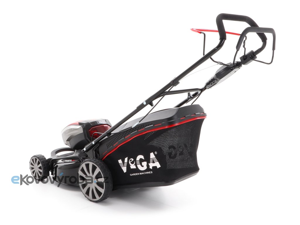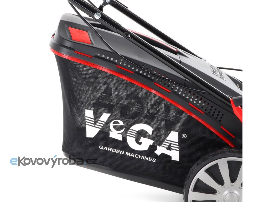 Zahradní sekačka VeGA je vybavena robustním ocelovým skeletem se záběrem sečení 46 cm . Motorová sekačka VeGA 46S ECO je poháněna silným elektrickým motorem o síle 1200W .