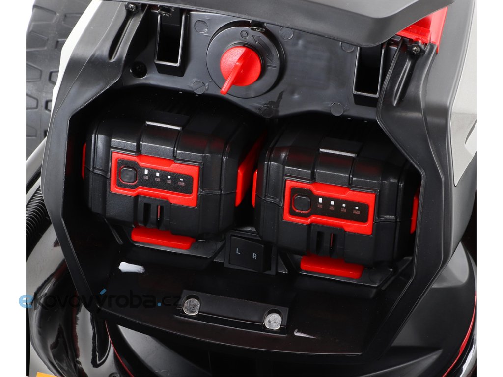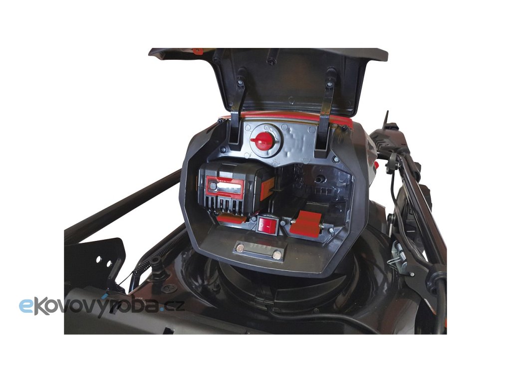 Tento model sekačky disponuje dvouslotovým uložením baterií. Jeden slot aktivní a druhý úložný pro možnost okamžité výměny baterie a pokračování v sečení.