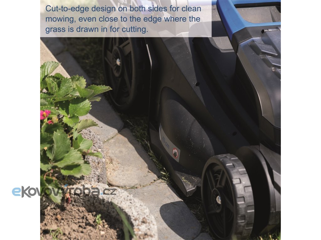 Velká a výkonná akumulátorová sekačka Scheppach BC-MP430-X s šířkou záběru 43 cm nabízí možnost sekání trávy, sekání trávy se sběrem do koše, sekání u okrajů a mulčování. Unikátní design pro střih blízko okrajů umožňuje čisté sekání i u obrubníků, kde je tráva automaticky přitahována k rotujícímu noži. Díky provozu bez kabelu je práce se sekačkou pohodlná a snadná.