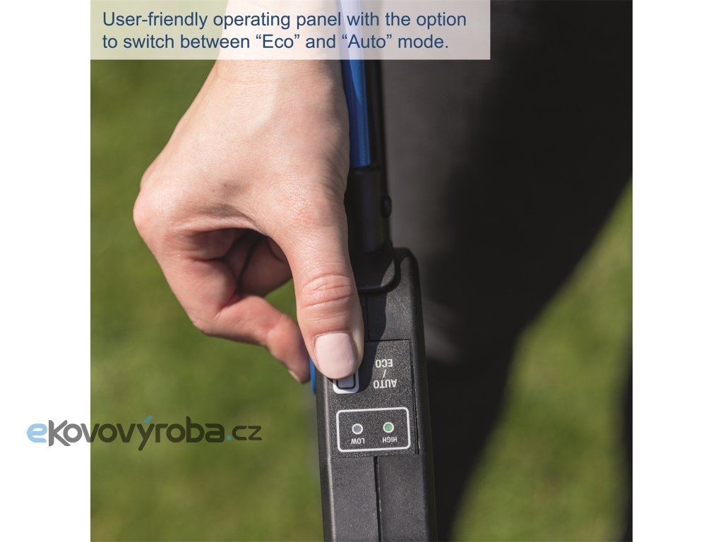 Výkonný systém 2x20 V (dohromady 40 V) zajišťuje spolehlivý výkon a efektivní práci. Ideální volba pro zahrady o velikosti 600–700 m2. Praktický ovládací panel umožňuje přepínání mezi režimy „Eco“ a „Auto“. V režimu Eco se nastaví nižší rychlost pro maximální výdrž baterie, zatímco v režimu Auto se rychlost automaticky přizpůsobuje aktuální zátěži. Výšku střihu lze snadno centrálně přizpůsobit v šesti stupních od 25 do 75 mm. Ergonomické komfortní madlo účinně absorbuje vibrace a přispívá k pohodlné práci. Sběrný koš s kapacitou 50 litrů a indikátorem naplnění minimalizuje nutnost přerušení při údržbě trávníku. Sekačka je vybavena bezpečnostním klíčem a sklopným krytem chránícím baterii. Vysoce odolný nůž ze speciální oceli zaručuje dlouhou životnost. Velká kola šetrná k trávníku poskytují skvělou stabilitu i na svažitých terénech. Sklopné madlo umožňuje snadné a prostorově úsporné skladování. Součástí balení je mulčovací nástavec, který umožňuje efektivní využití posekané trávy jako přírodního hnojiva.