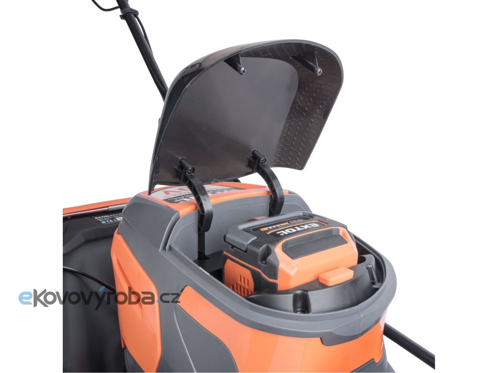 Aku sekačka spojuje výhody elektrických sekaček - nízký hluk, jednoduchost obsluhy a údržby se svobodou pohybu benzínových sekaček. Sekačka je poháněná nejmodernějším „brushless" motorem. Tento nový typ motoru má vyšší životnost, je výkonnější a má menší spotřebu el. energie než klasické motory s uhlíkovými kartáči. Zdrojem energie je vysokokapacitní 60V Li-ion akumulátor. S plně nabitým 8Ah akumulátorem můžete pravidelně sekat až 1200m² travní plochy. Tato rozloha může být ovlivněna výškou a kvalitou sekaného travního porostu. Při vjezdu do husté trávy řídící jednotka automaticky zvýší otáčky motoru, aby snadno překonala odpor. Výšku sekání lze centrálně nastavit na jednu z 6 poloh v rozsahu 25-80mm. Výšku madla si můžete nastavit do 3 různě vysokých poloh. Kolečka pro složení madla mají pojistku proti vyšroubování, takže se nemohou ztratit. Vybavení sekačky umožňuje 4 typy sekání: sběr trávy do koše, mulčování, boční a zadní výhoz. Díky elektrickému pohonu není třeba sekačku složitě startovat, prostě zmáčknete tlačítko a už sekáte. Pokud při sekání často vynášíte koš s trávou, tato sekačka vám ušetří až desítky minut oproti benzínové sekačce, protože ji nemusíte pokaždé složitě startovat. Naprosto nezávisle na sekání si také můžete kdykoliv zapnout el. pojezd, který Vám pomůže překonat terénní překážky. Rychlost pojezdu lze plynule nastavit v rozsahu 0-5km/h. Sekačka váží 25kg, což je zhruba polovina hmotnosti obdobné benzínové sekačky a je proto vhodná také pro starší lidi a velmi snadno se s ní manévruje kolem stromků a jiných překážek. Masivní 20/25cm kola uložená v kuličkových ložiscích ulehčují pohyb sekačky v terénu. Velký 60l koš s indikací naplnění na trávu má boční strany vyrobeny z pevné a prodyšné tkaniny což dovoluje zmenšit rozměr koše při skladování. Dlouhou životnost a odolnost proti mechanickému poškození zajišťuje kovový buben. Pro snadné čištění bubnu si můžete postavit sekačku svisle. V této poloze zabírá na podlaze pouze 54×46cm a je to ideální poloha pro skladování v menších prostorech. Přední nárazník je vybaven madlem pro snadné přenášení. Sekačka je vybavena dvojitým bezpečnostním jištěním - spoušť sekačky je jištěna bezpečnostním tlačítkem a vedle baterie je speciální bezpečnostní klíč, bez kterého nelze sekačku spustit. Pokud ho vytáhnete a vezmete si ho sebou, nemohou například děti spustit sekačku a zranit se nebo při přepravě autem se vám sekačka sama nespustí při přejezdu nerovností. Akumulátor je vybaven ukazatelem nabití, což umožňuje uživateli si rozvrhnout délku práce a dát si včas nabít další akumulátor. Díky použité Li-ion technologii je ho možné kdykoliv dobíjet, aniž by se tím snižovala jeho kapacita. Li-ion akumulátor ztrácí energii vlivem samovybíjení velmi pomalu a vydrží dlouho nabitý a připravený k použití.