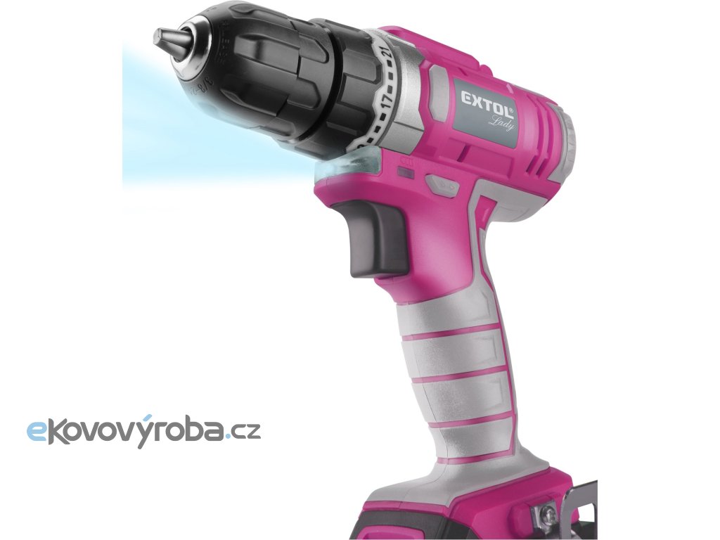 vrtací šroubovák aku, růžový, 12V Li-ion, 1300mAh, v tašce