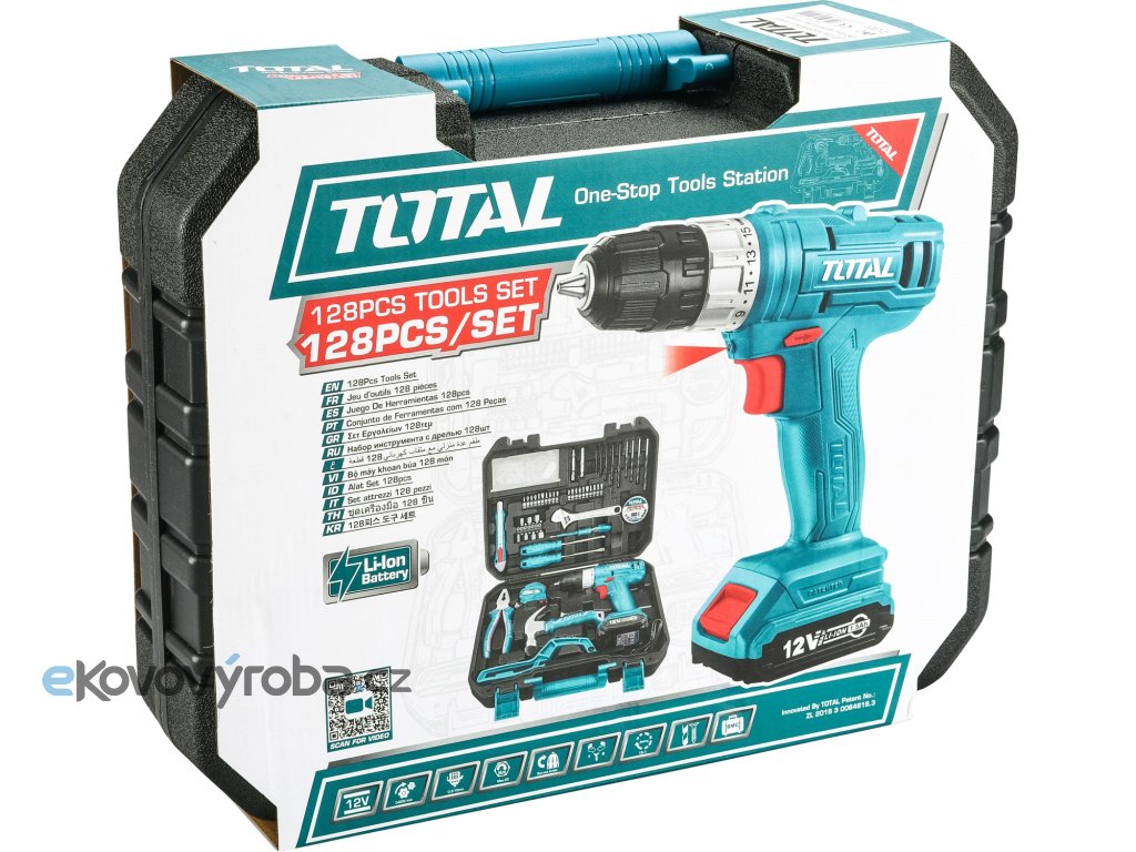Vrtací šroubovák AKU 12V Li-ion s nářadím, sada 128ks