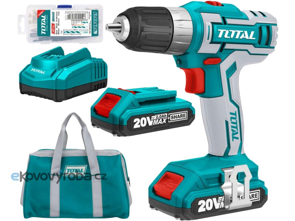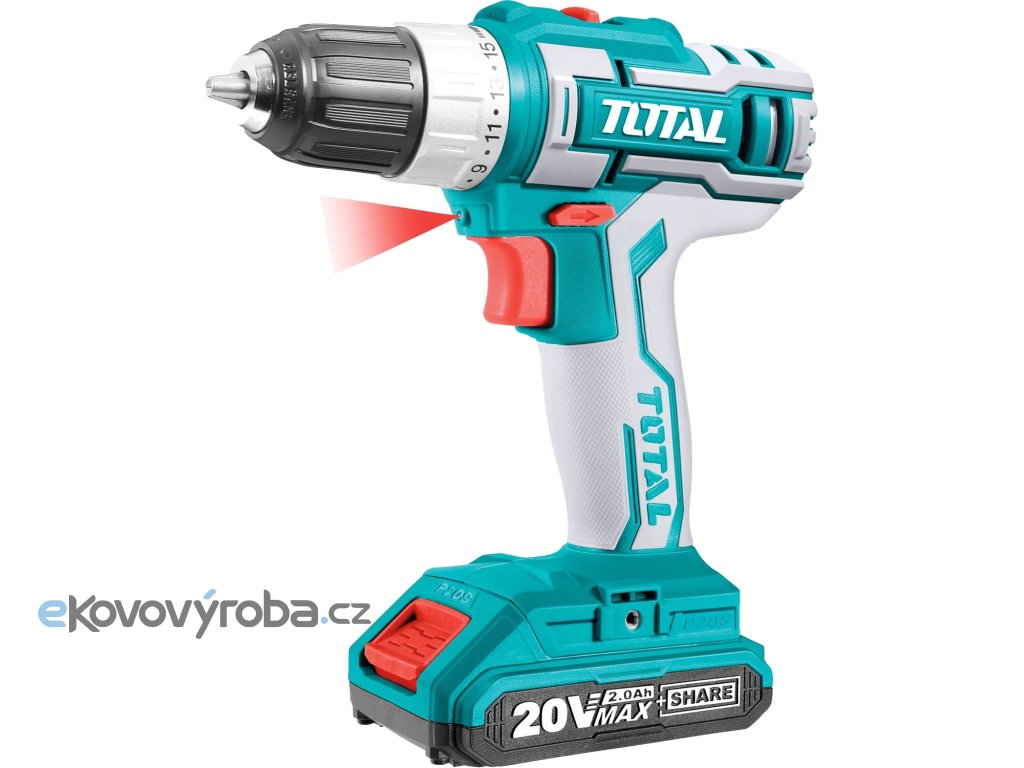 Lehký a výkonný dvourychlostní vrtací aku šroubovák s vysokým utahovacím momentem pro vrtání a šroubování do kovu a dřeva. Akumulátor lze použít ve všech 20V aku strojích z řady Total. Díky Li-ion technologii je možné akumulátory kdykoliv dobíjet, aniž by se tím snižovala jejich kapacita. Li-ion akumulátor také ztrácí energii vlivem samovybíjení velmi pomalu a vydrží dlouho nabitý.