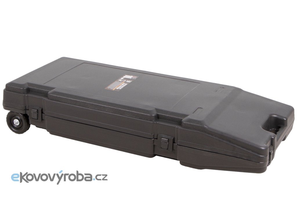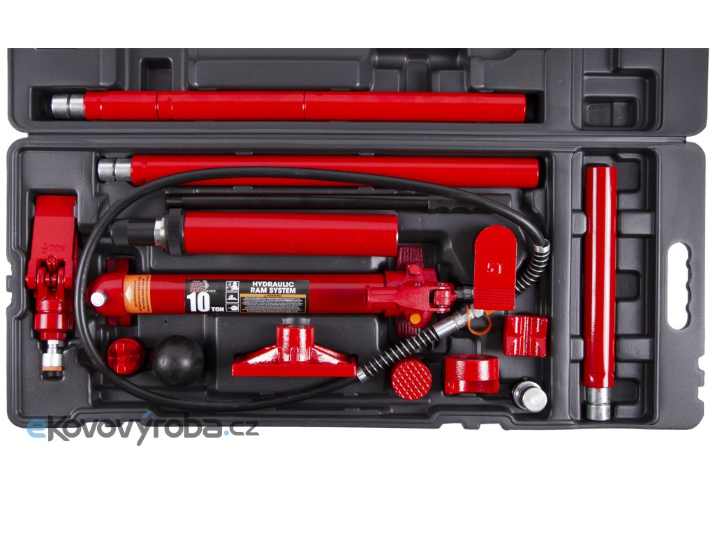 Konstrukci tvoří hydraulický válec se silou 10 tun a kvalitní příslušenství uložené v praktickém plastovém kufru s kolečky pro snadnou manipulaci.