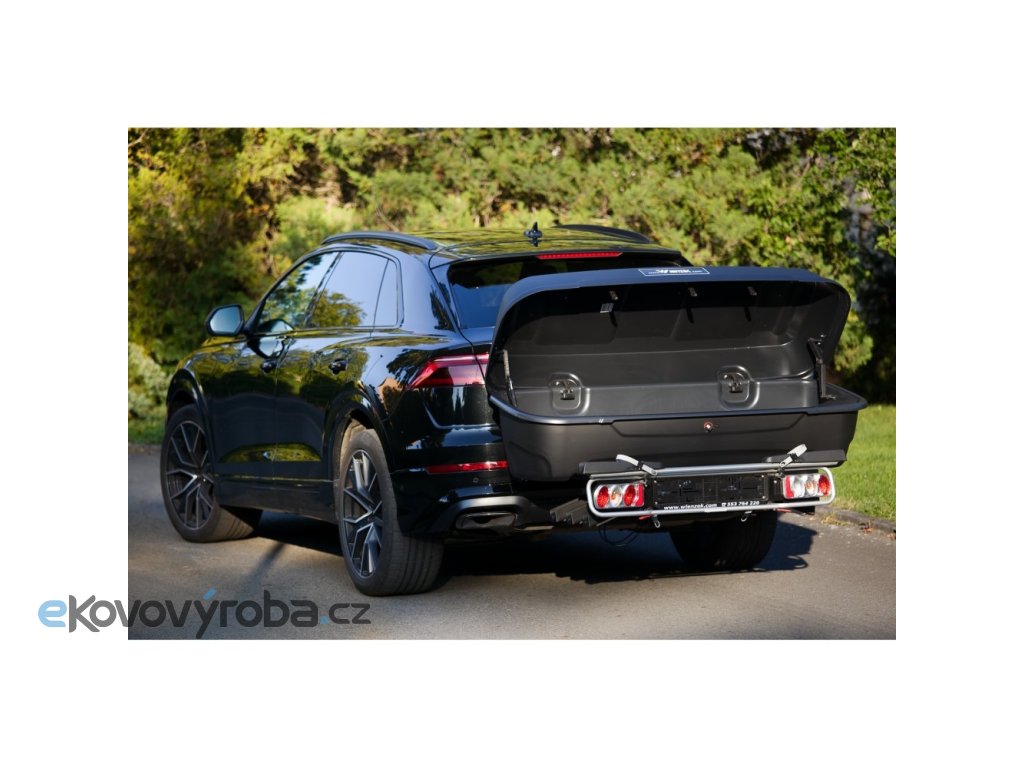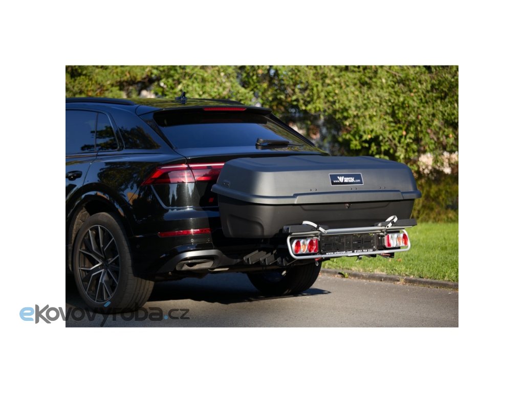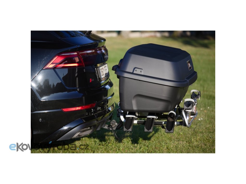 Box je použitelný pouze na nosiči ALFA variant 3 a ALFA variant 3+1. Zajištění na nosiči pomocí dvou šroubů a dvou pásků na kola, upnutí je možno pojistit ještě dalšími dvěma pásky. Box je možno otevřít cca 56 cm, jeho objem je 400 l. Převážet je možno téměř vše, až na příliš ostré předměty či agresivní chemické látky. Vyroben je z kvalitního plastu, který je schopen odolat velkému zatížení či nepříznivým vlivům počasí. Samozřejmostí je zámek proti otevření, náhradní klíč je součástí balení. Celý box je možno pomocí uzamykatelných matic, demontovaných z nosiče, uzamknout k nosiči kol tak, aby nedošlo k jeho odcizení.