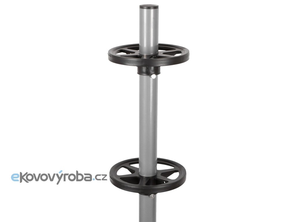 - Stabilní konstrukce: Podvozek stojanu z masivní oceli a trubky z hliníku zajišťují jeho stabilitu a odolnost i při plném zatížení.