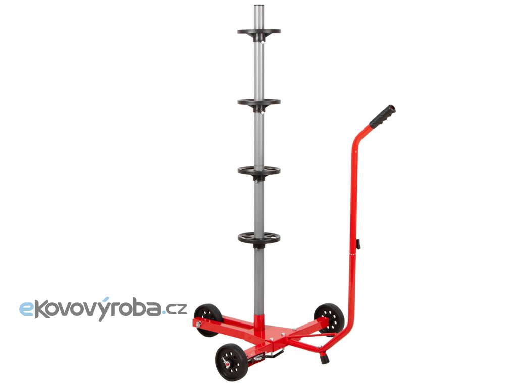 - Pojízdné provedení: Se třemi koly s hladkým chodem je stojan snadno přemístitelný. Zjednodušuje tak manipulaci s pneumatikami v dílně nebo garáži.
