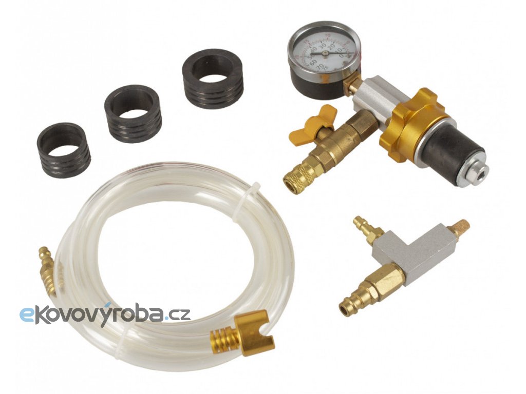 Po připojení kuželového adaptéru s manometrem k vyrovnávací nádržce chladící kapaliny připojíte hadici stlačeného vzduchu k přístroji a vytvoříte podtlak v systému.