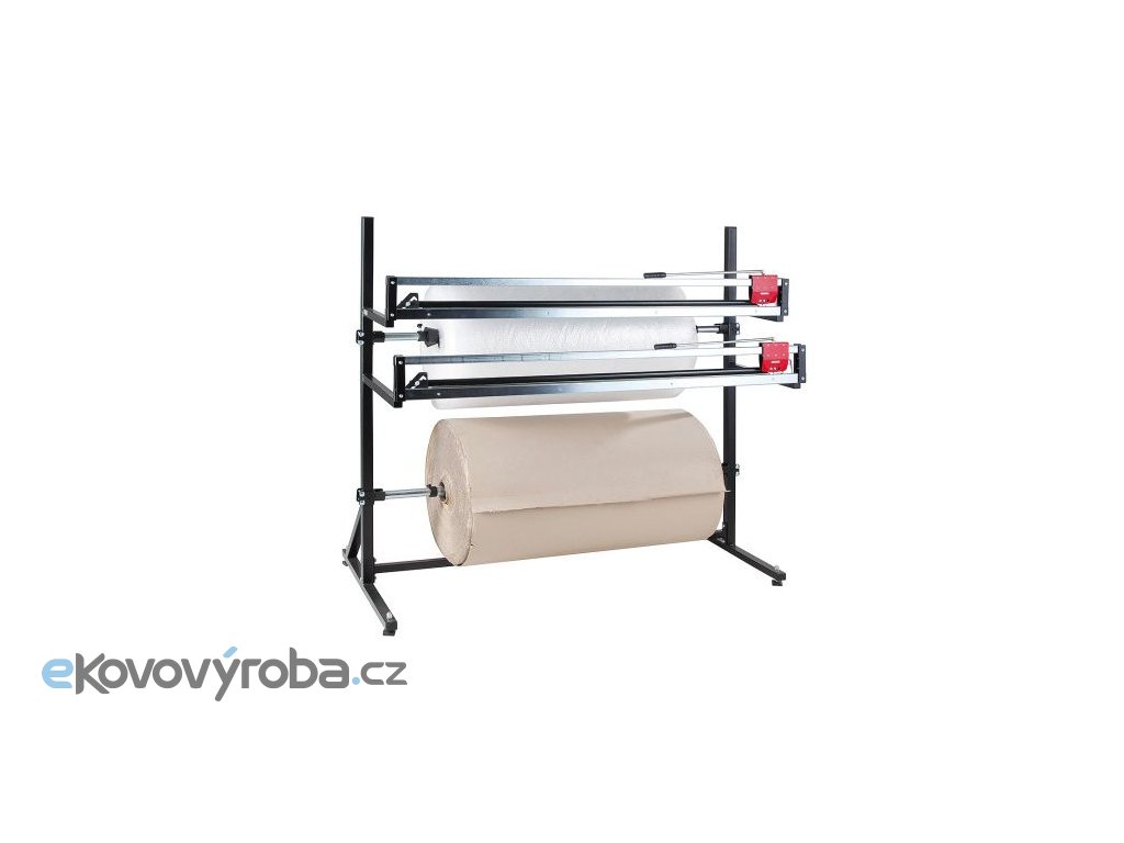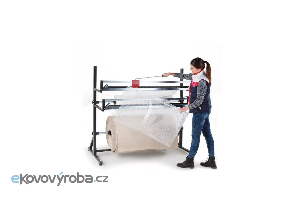 Přidržovač balícího materiálu a řezací kazeta zaručují snadné a přesné oříznutí požadované velikosti balícího materiálu. Řezací stojany jsou dodávány s dvěma univerzálními čepelovými noži, které lze bez záměny použít pro řezání. Vybaveno dvěma nosnými pozinkovanými tyčemi – pro 2 náviny. Uplatnění v balících a expedičních centrech – vlnitá lepenka, obalový papír, PE fólie, bublinková fólie, atd. Určeno pro role v délce 1600 mm s maximální hmotností 80 kg.