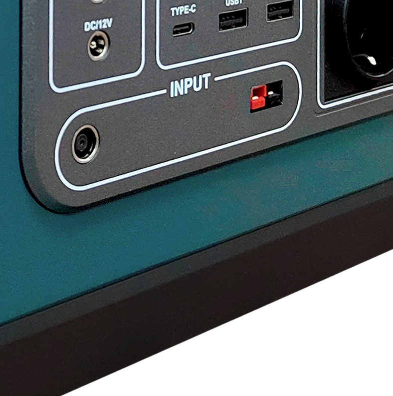 Přenosná bateriová stanice je vybavena kvalitními lithiovými bateriemi, které mají vysokou kapacitu, ale zároveň jsou malé a lehké, mají dlouhou životnost a několik bezpečnostních prvků. Přenosná elektrocentrála je vybavena vestavěným systémem BMS (Battery Management System), který je řízen inteligentním procesorem pro řízení napájení. Četné bezpečnostní funkce zajišťují odolný a bezpečný provoz.