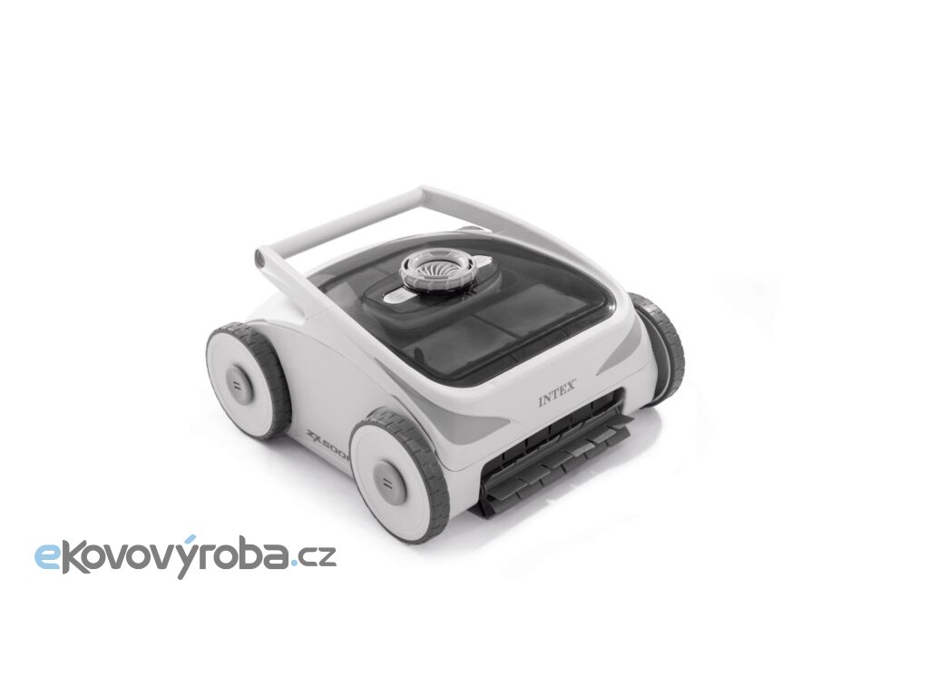 Vysavač bazénový ZX500R - Intex 28624 2025 - Bezdrátový elektrický bazénový čistič - 3 motory: 1 pro vodní čerpadlo a 2 pro pohon kol - 2,5 hodiny plného nabití baterie 8000mAh - 120 minut na čištění bazénu o rozměrech 9,75 m x 4,88 m x 1,32 m nebo 7,92 m x 1,32 m - Inteligentní algoritmus pro efektivní čištění podlahy a stěn bazénu - Průtok čerpadla: 11 350l /hod - Automatické vypnutí, když čističi došla voda - Snadno čistitelný filtr - Samostatné zastavování na okraji bazénu, snadné vytažení po dokončení čištění