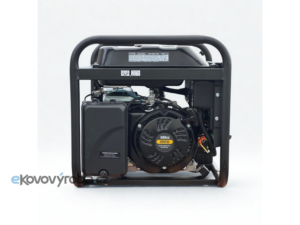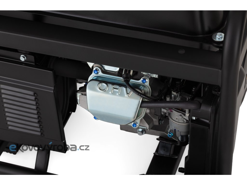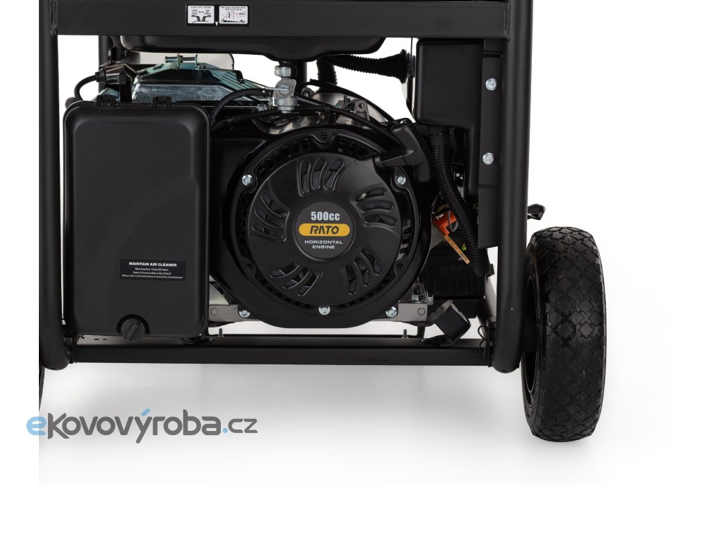 - Generátor je poháněn výkonným motorem R500 (500 cm³), který je čtyřtaktní, jednoválcový, vzduchem chlazený a zajišťuje dlouhou životnost i spolehlivý provoz.