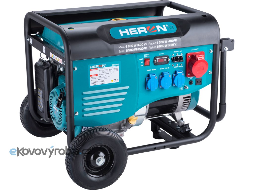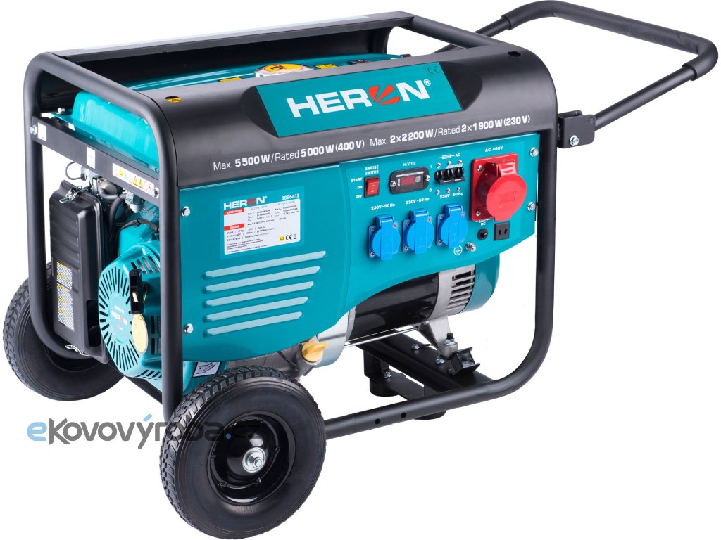 elektrocentrála benzínová 13HP/5,5kW/6,8kVA (400V), 2x2,2kW (230V), podvozek