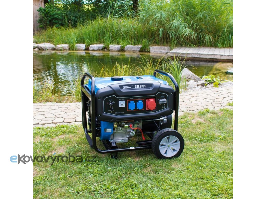 Pojízdný (benzinový) generátor GÜDE, určený k pohonu elektrického nářadí, strojů a domácích spotřebičů v domácnostech, rekreačních objektech nebo při montážních pracích.