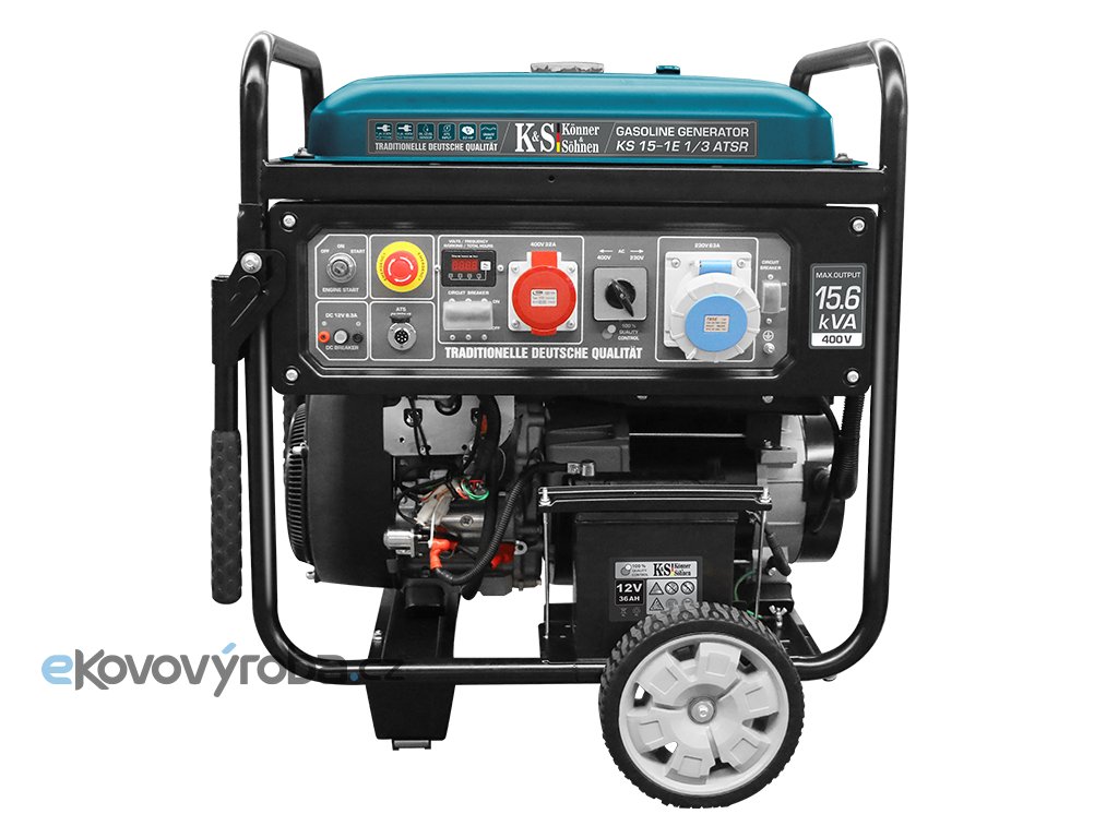 Vysoce výkonná benzínová elektrocentrála KS 15-1E 1/3 ATSR je založena na robustním proprietárním dvouválcovém motoru o výkonu 22 HP od společnosti „Könner & Söhnen“, který splňuje všechny evropské normy kvality včetně nejnovějších emisních norem EURO V.