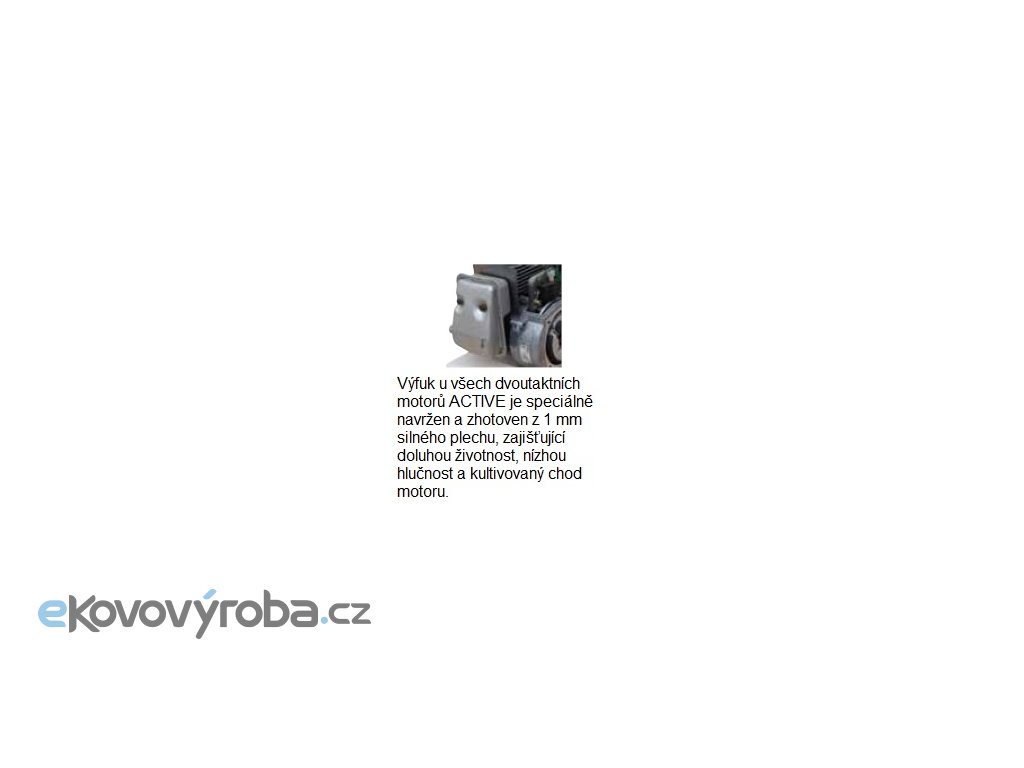 Výfuk u všech dvoutaktních motorů ACTIVE je speciálně navržen a zhotoven z 1 mm silného plechu, zajišťující dlouhou životnost, nízkou hlučnost a kultivovaný chod motoru.