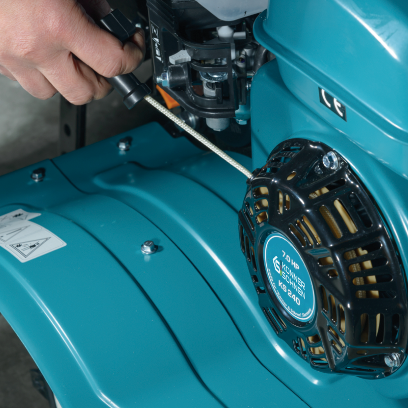 Benzínový kultivátor Könner & Söhnen KS 7HP-950A s řemenovým pohonem a výkonem 7 HP je ideální pro zpracování všech typů půd - od sypké až po panenské. Je praktický, spolehlivý a schopen řešit rozmanité úkoly a to včetně přípravy půdy, výsadby plodin, sklizně apod. Kultivátor je vybaven vysoce výkonným a úsporným čtyřtaktním kultivačním motorem od společnosti Könner & Söhnen, který splňuje nejnovější emisní normy EURO 5. Motor je navržen pro nepřetržitý provoz a poskytuje vysoký výkon.
