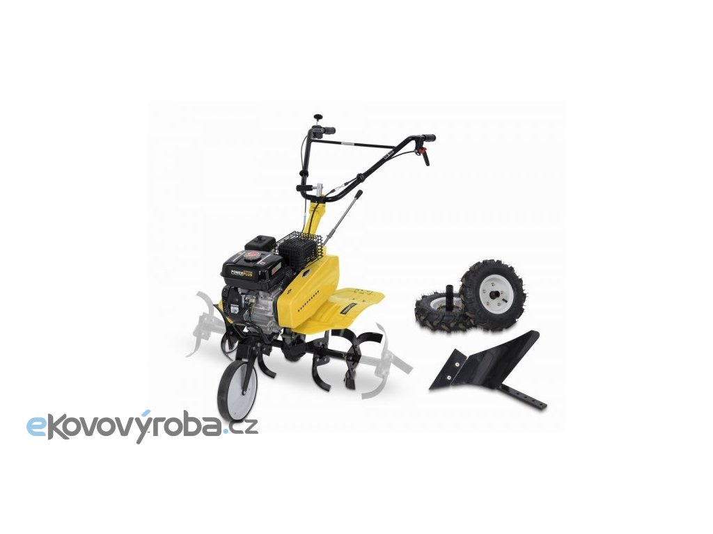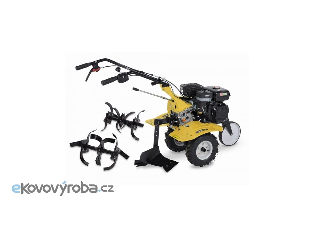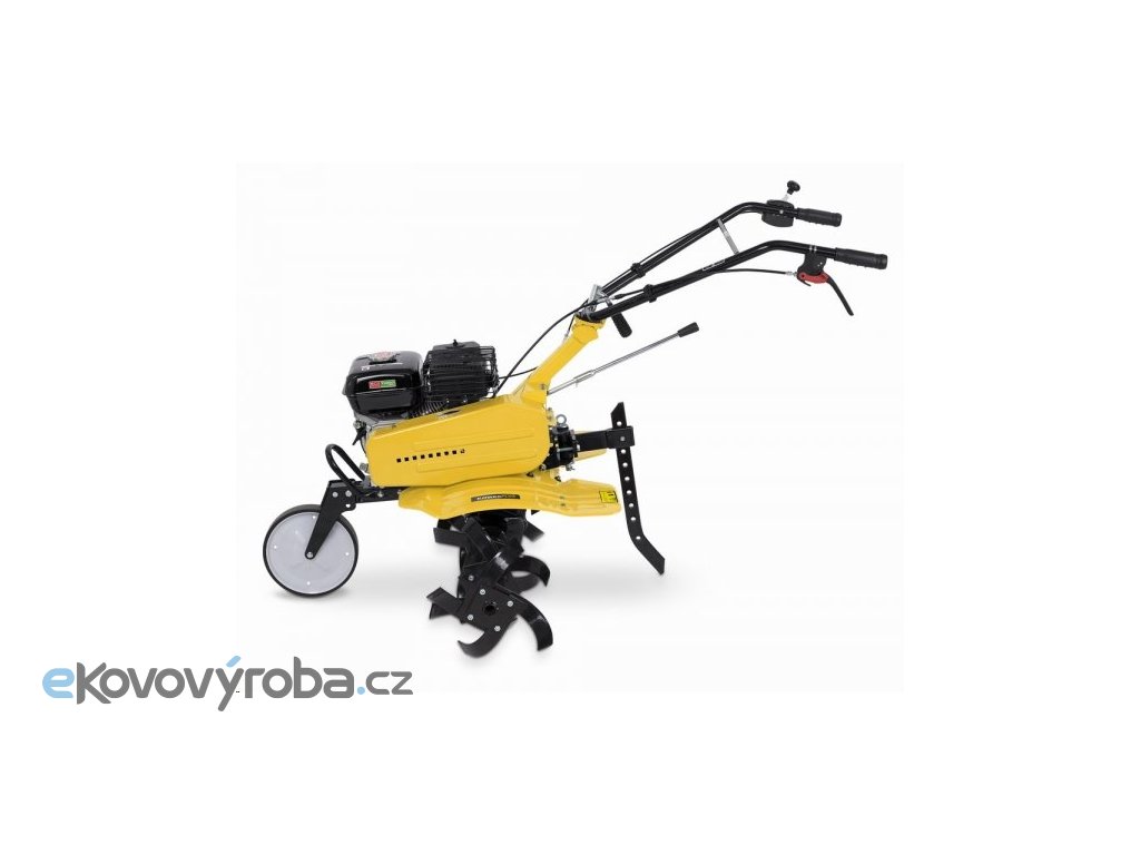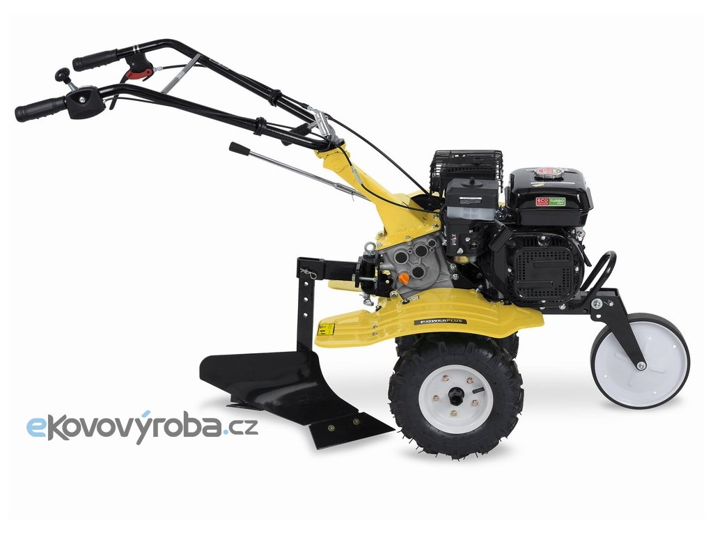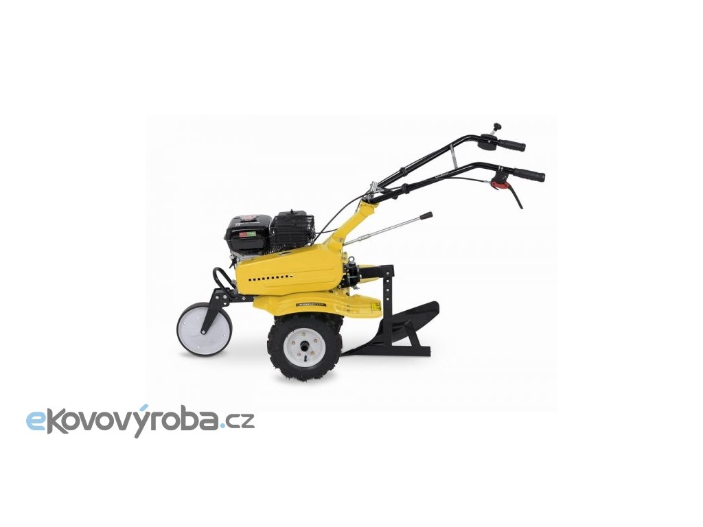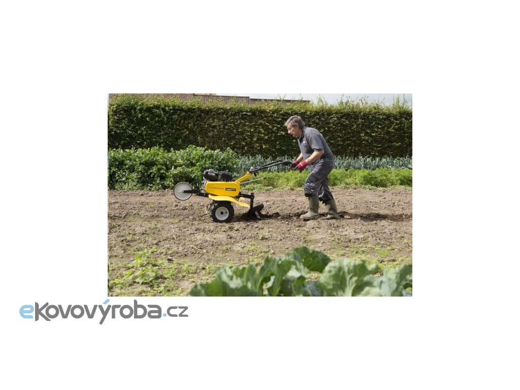 Výměna pluhu za kultivovací nože je velmi snadná a rychlá. Pro nastavení hloubky kultivace slouží zadní kovová opěra. Nastavitelná poloha řídítek, velká nafukovací kola a přední vodící kolečko ještě více usnadní manipulaci s přístrojem. Pro pojezd jsou k dispozici 2 rychlosti dopředu a také jednorychlostní zpětný chod.