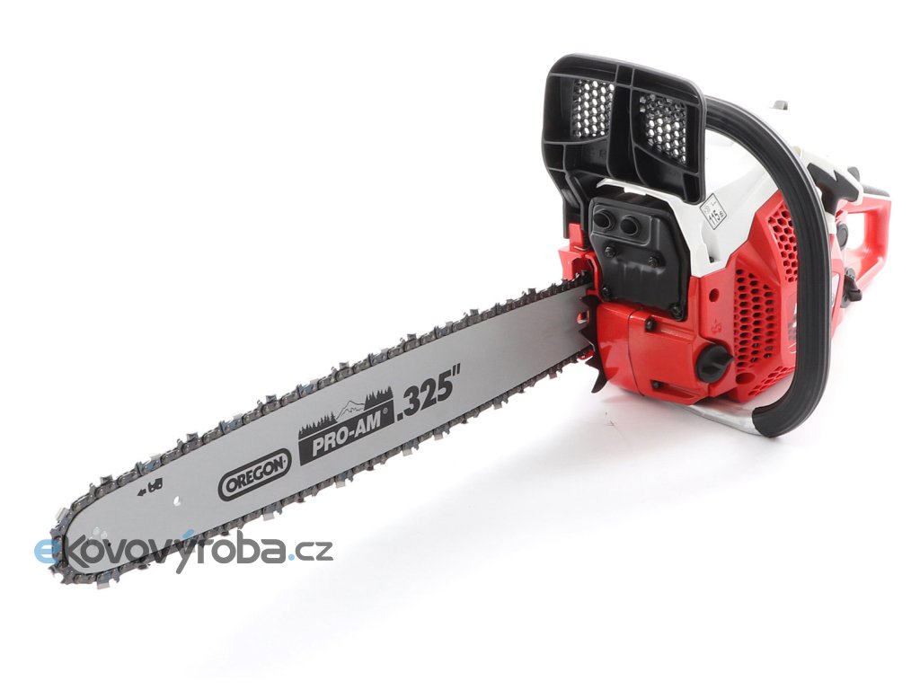 Výkonný motor: Motor o objemu 56 cm^3 s výkonem 2,4 kW (3,2 HP) poskytuje dostatek síly pro efektivní řezání i silných stromů a větví.