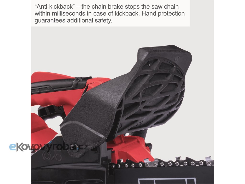 Je osazena kvalitní lištou a řetězem ProCut. Řez tak bude vždy rychlý, bezpečný a hladký. Další výbava zahrnuje automatické mazání řetězu, brzdu motoru, nastřikovací pumpičku pro snadné starty, heavy-duty vzduchový filtr pro dlouhou životnost motoru, očko na přichycení karabiny a antivibrační systém. Pila je lehká, skvěle vyvážená a držadlo umožňuje snadné držení pily v různých polohách.