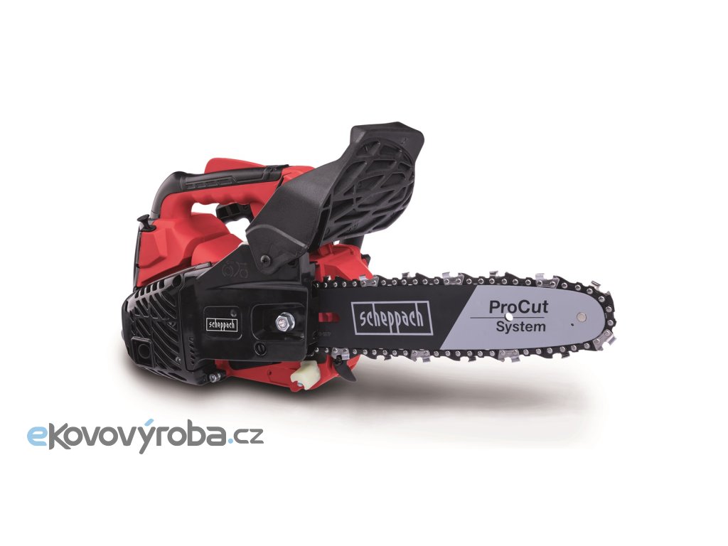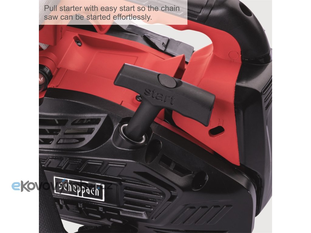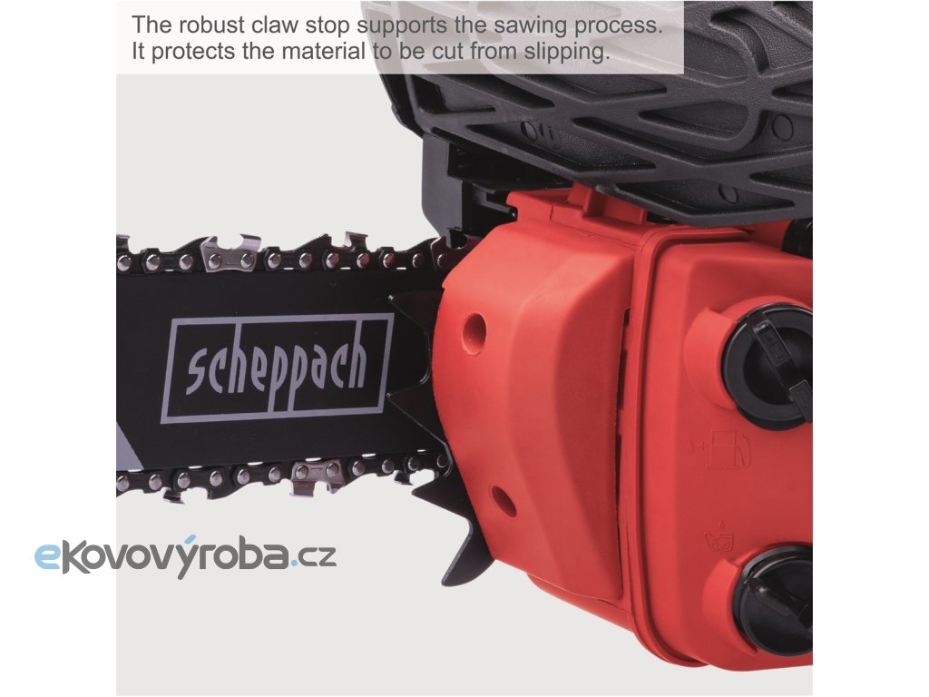 Benzínová pila Scheppach PCS 26 je malá, kompaktní pila, vhodná na prořezávání stromů, přípravu palivového dřeva o menším průměru, arboristické a tesařské práce a další běžné práce okolo domu.