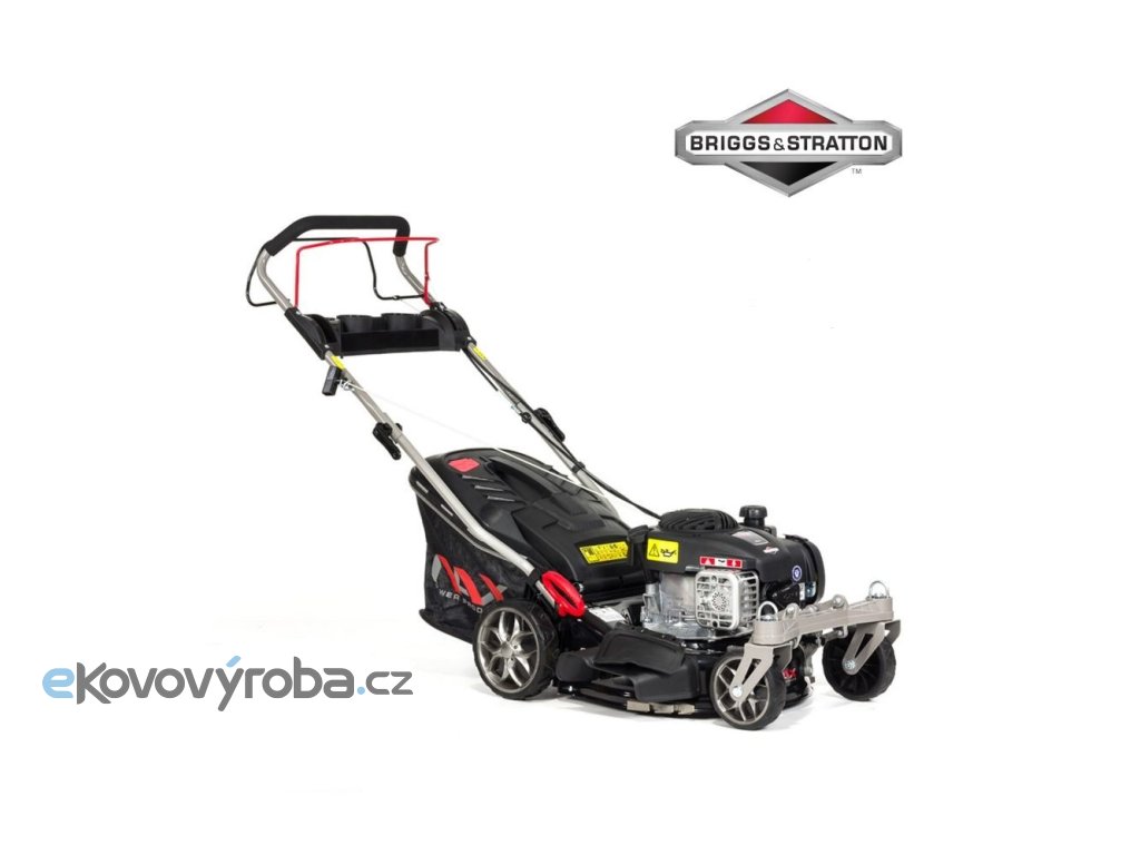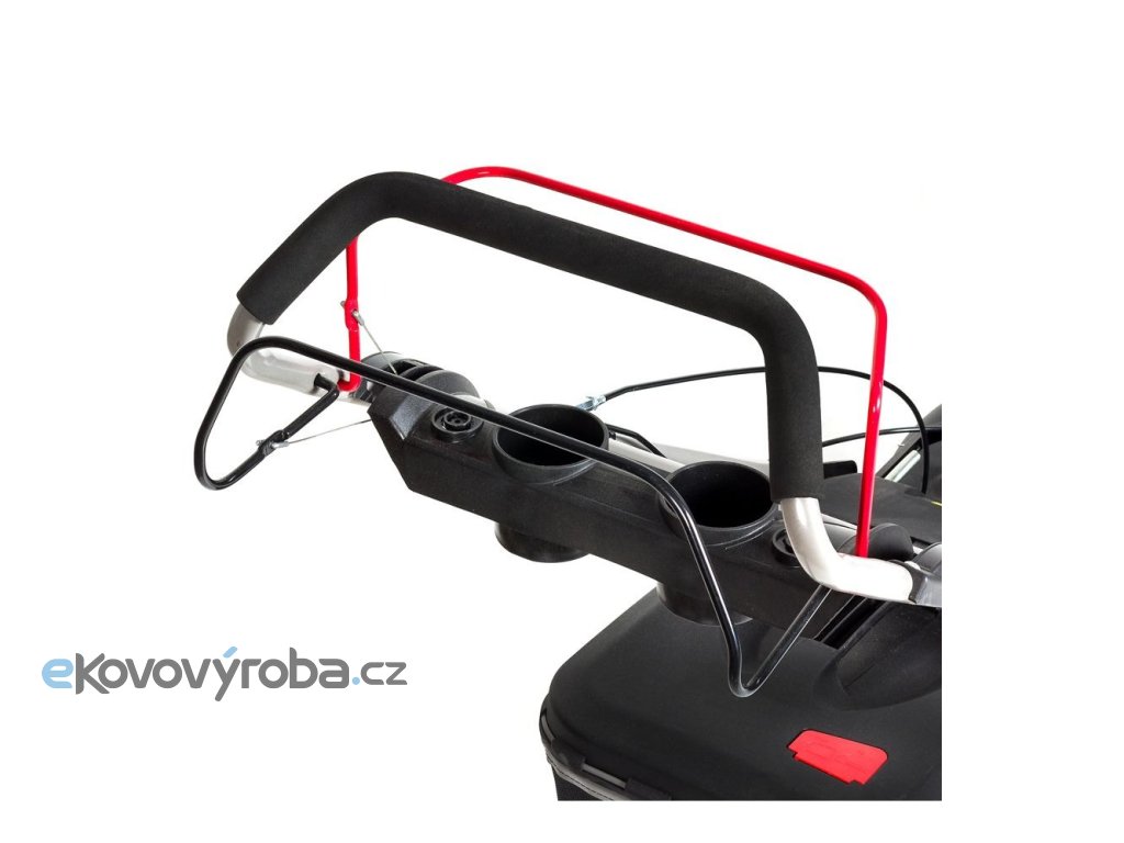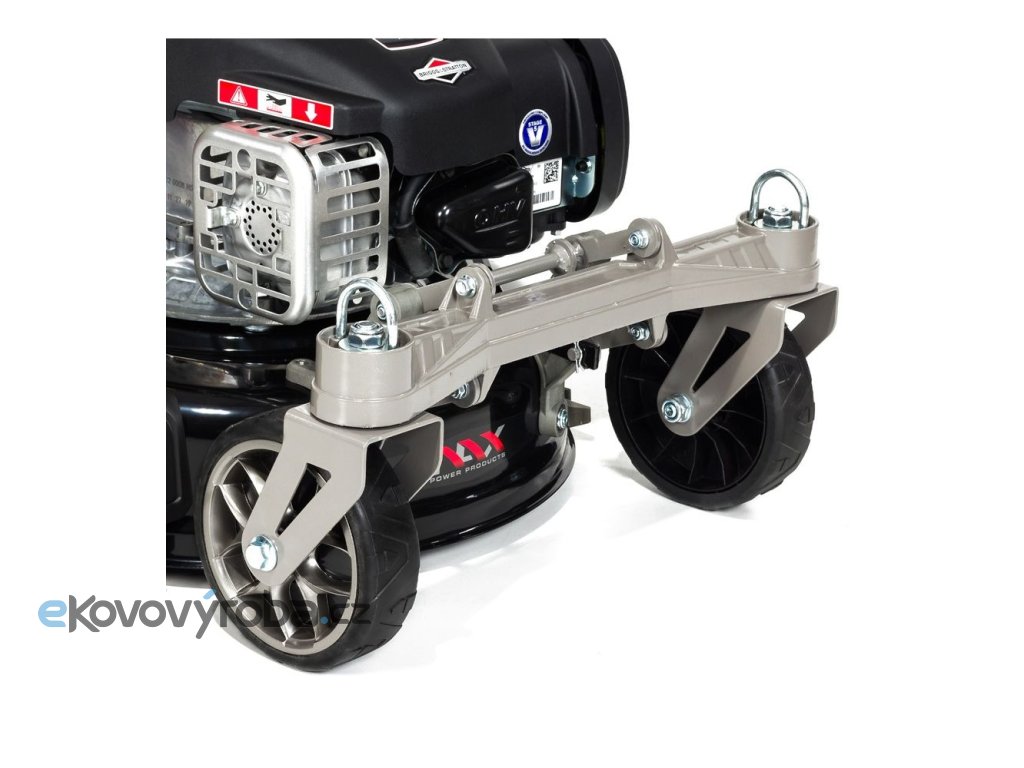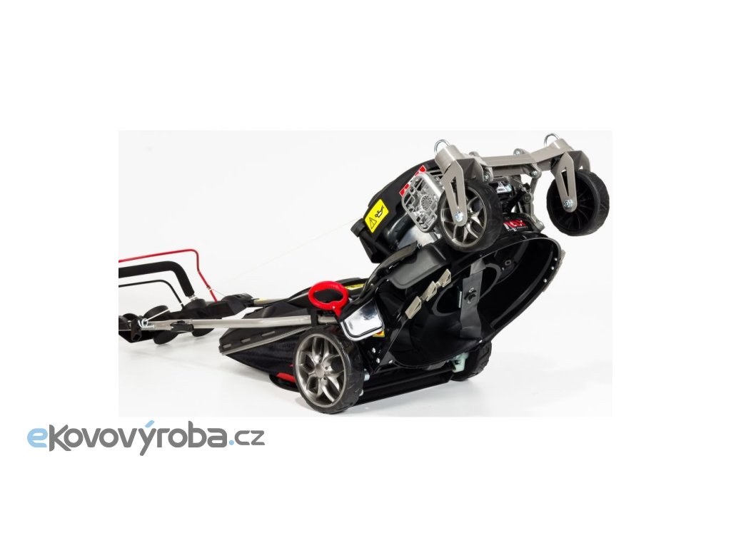 Vyztužené tělo sekačky je odolné vůči korozi. Měkčené a ergonomicky tvarované rukojeti zaručují pohodlí při práci. Díky kolečkům s kuličkovými ložisky se vám se sekačkou dobře manipuluje i v náročném terénu. Kola se otáčí až o 360°. Můžete je ovšem zaaretovat, aby se neprotáčela. Pod madlem najdete panel s přihrádkou na nápoj nebo nějakou drobnost.