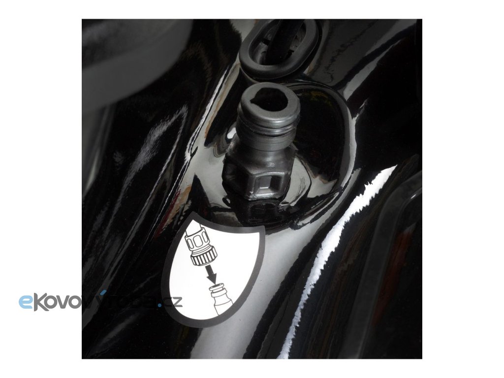 Systém mytí pláště se postará o snadné a rychlé umytí vnitřního těla sekačky. Jen připojíte zahradní hadici do rychlospojky a pustíte vodu.