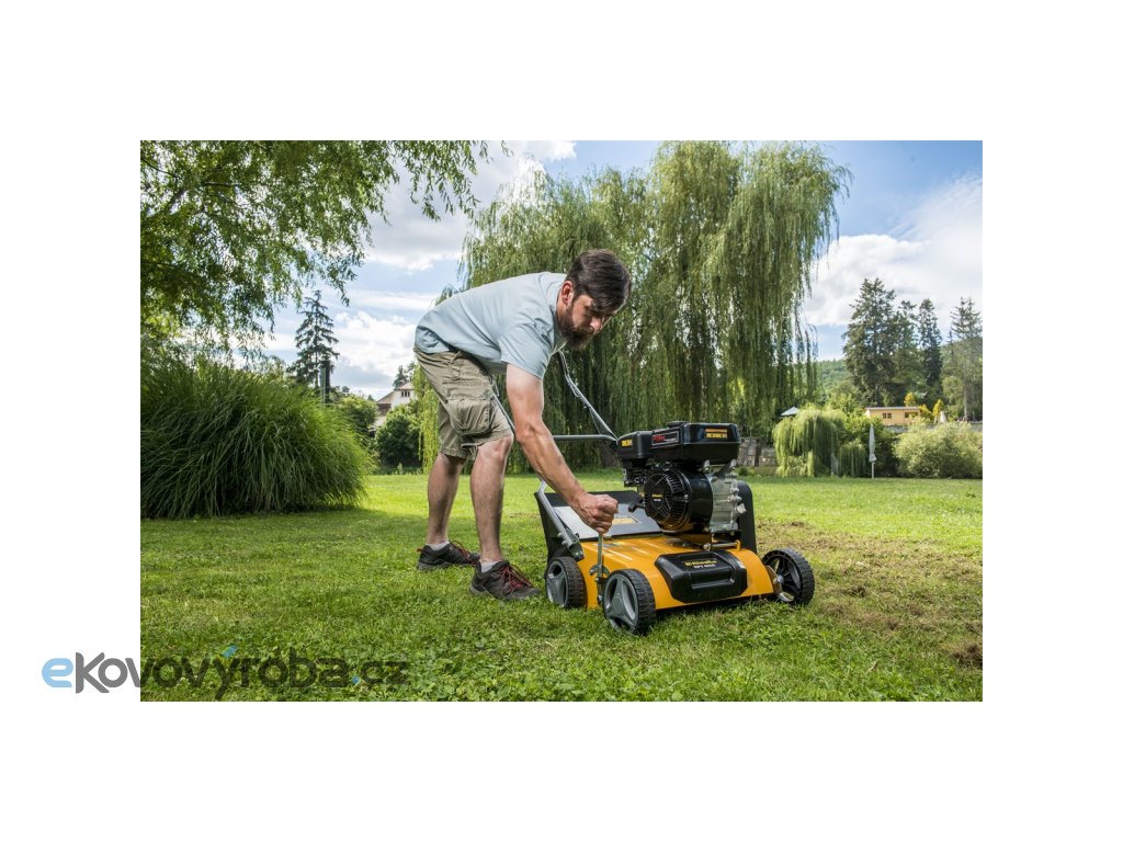 Pokud je potřeba trávník pouze vyčesat od plsti, odumřelé trávy, mechu apod., je k dispozici druhý válec, který je osazený pružnými drátky. Robustní stroj je vybaven tak, aby práce s ním byla vždy komfortní. Řidítka mají ergonomický tvar, nastavení hloubky vertikutace se děje snadno pomocí jedné páky a 4 velká kola umožní hladký pohyb i po nerovném terénu.