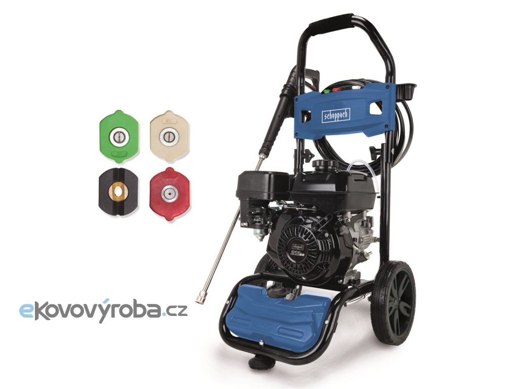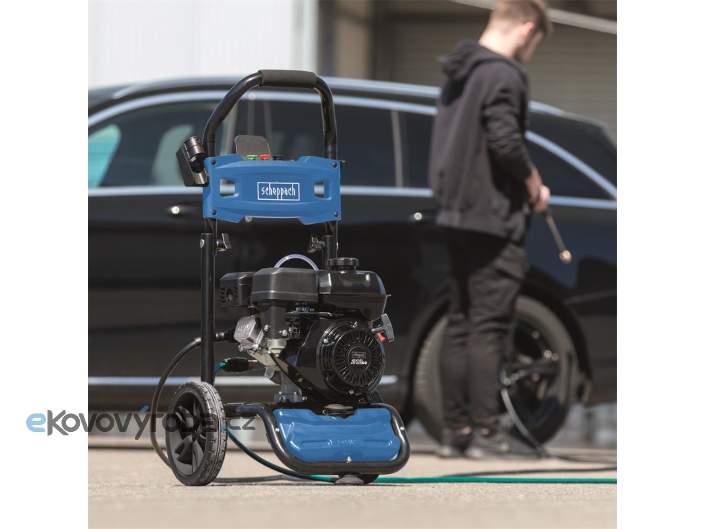 Velmi výkonná benzínová tlaková myčka Scheppach HCP 5000 je univerzální pomocník pro domácnosti, farmy, stavební firmy, servisy a další provozy, určený k čištění v podstatě všech tvrdých povrchů, příjezdových cest, nádvoří, zídek, zahradního nábytku, vozidel nebo lodí. Možnosti jsou téměř neomezené. Základem dlouhé životnosti je silný motor o výkonu 5,9 HP, stabilní a krutu odolná ocelová konstrukce s kvalitní povrchovou úpravou, heavy-duty mosazné čerpadlo a nástavec k pistoli z nerezové oceli. Komfortními prvky jsou potom velká pojezdová kola, díky benzínovému pohonu nezávislost na elektrickém zdroji, dlouhá 9,2 m kvalitní tlaková hadice s držákem na myčce, úložný prostor na 4 různé trysky, úložný prostor na tlakovou pistoli. Velmi vysoký průtok 570 l/hod umožňuje opravdu důkladné očištění i velmi špinavých ploch třeba i ze zemědělských nebo terénních vozidel pracujících v těžkých podmínkách a rovněž zajišťuje dobrý oplach i z rozsáhlých ploch při mytí dlažby, zdí apod.