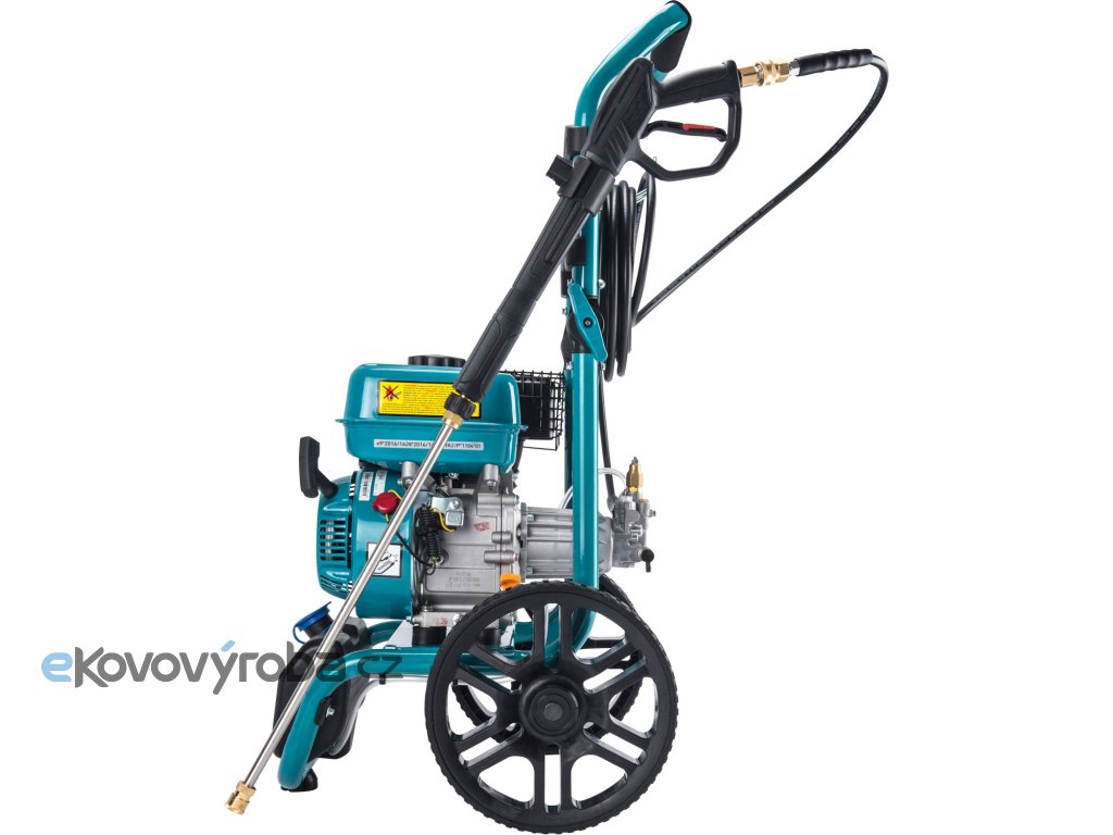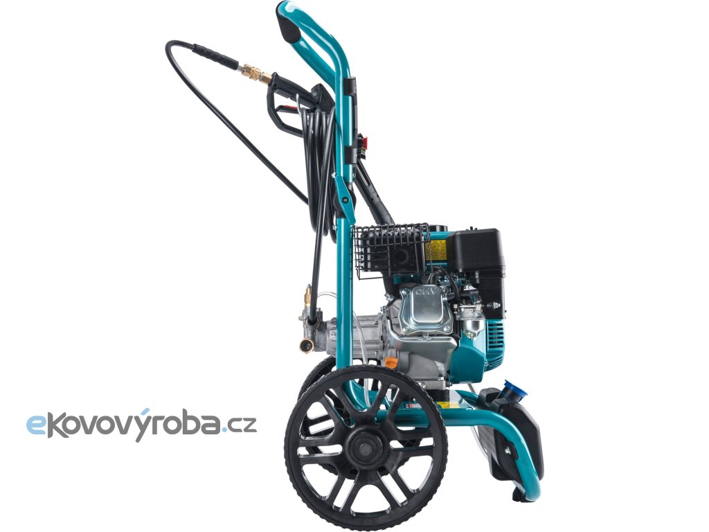 Lehký vysokotlaký motorový vodní čistič vyniká vysokým tlakem vody na výstupu – až 186bar, který zaručuje jeho vysoký čistící výkon. Srdcem čističe je kvalitní HERON motor a čerpadlo italské značky AR, které mu dávají vysoký výkon a dlouhou životnost. Stroj je tak určen k velice efektivnímu a rychlému čistění povrchů a ploch z kamene, dřeva, kovu, plastu jako např. chodníků a teras za účelem odstranění mechu a řas, dále fasád domů, zahradního nářadí, zemědělských strojů atd. Hlavní uplatnění nachází tento výrobek na stavbách, po povodních, čištění aut a zemědělské techniky a pro místa kde není vždy dostupný el. proud a je třeba vyčistit větší plochy. Na jednu 3,6l nádrž benzínu můžete nepřetržitě pracovat 2h. Čistič má kompaktní konstrukci s velmi malým půdorysem a v rámu je zabudovaná nádoba pro saponát, který se používá pro šamponování. Tlaková hadice s ocelovou výztuhou ma na obou koncích kompatibilní rychlospojky a pokud potřebujete delší dosah hadice můžete zapojit dvě za sebou. Sklopitelné madlo a pevná kola, která jsou součástí dodávky, umožňují snadný převoz stroje na místo použití podobným způsobem jako cestovní zavazadlo s madlem a kolečky. Součásti dodávky je 5 trysek (0º, 15º, 25º, 40º a šamponovací), 10m tlaková hadice s rychlospojkami a stříkací pistole s hubicí. Pomocí adaptéru 8895231 lze na stroj připevnit spoustu dalšího příslušenství v naší nabídce.