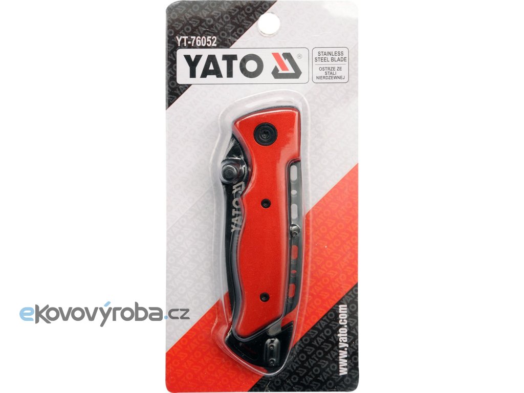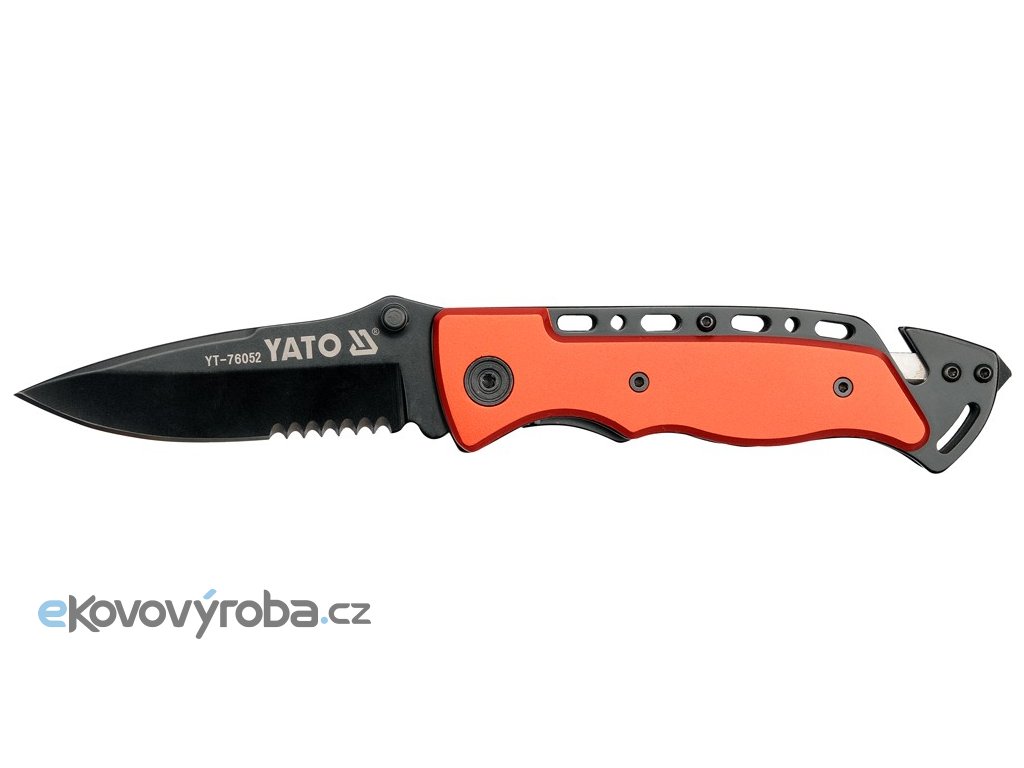 Nůž je určen především pro milovníky nožů a fandy značky Yato. Čepel délky 95 mm je zhotovena z kvalitní nerezové oceli, lakované do matné, černé barvy a je navíc vybavena ozubením na konci ostří. Tvar čepele „drop point“ je nejuniverzálnější lovecká čepel, je vhodná pro porcování masa i stahování kůže, ale díky snížené špičce, lze využít i k bodání.