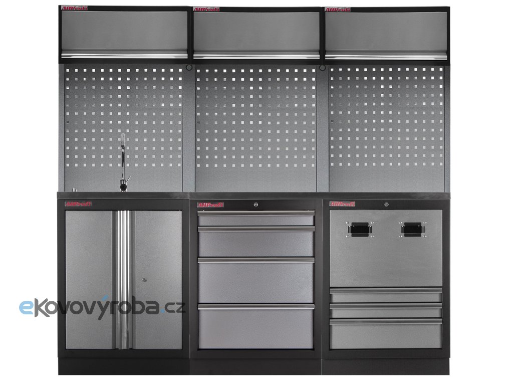 Sestava nábytku v sobě skrývá dostatečné množství úložného prostoru pro vaše nářadí, autotechniku i dílenské vybavení. V kombinaci s bytelnou pracovní deskou získáte multifunkční stěnu, se kterou vám půjde práce od ruky ve všech směrech.