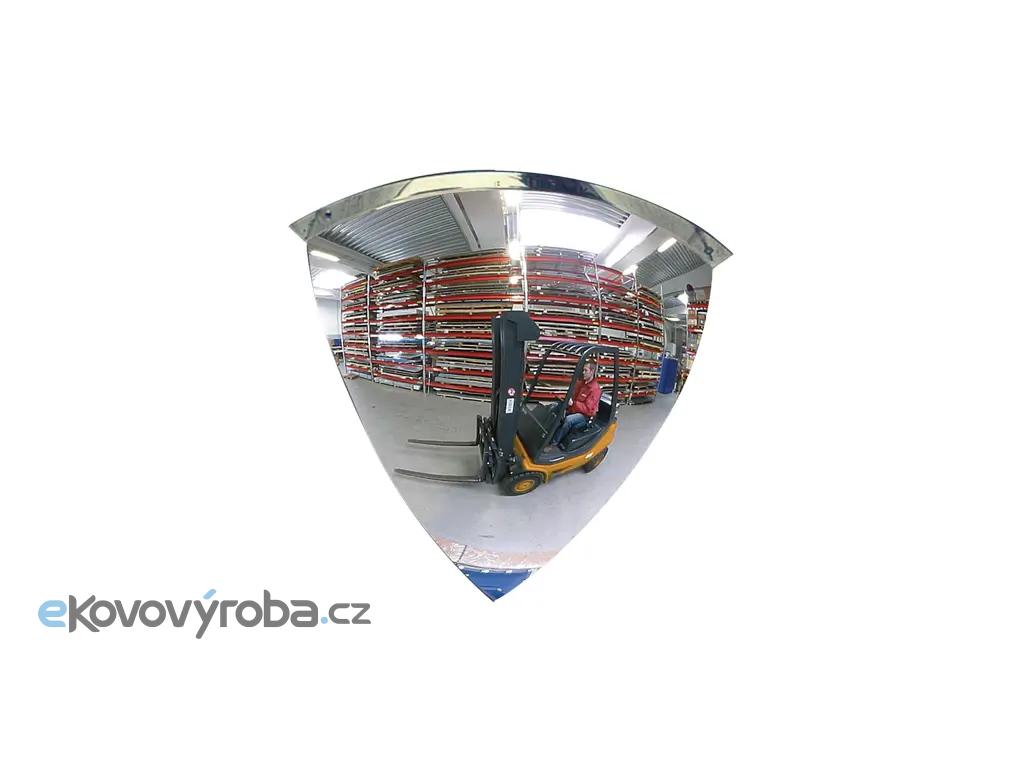 Kontrolní zrcadlo je důležitý prvek bezpečnosti v provozu. Na výrobu tohoto zrcadla byl použit kvalitní polymetylmetakrylát, který je o 70 % odolnější vůči rozbití než sklo. Zrcadlo má velmi vysokou optickou kvalitu. Snadno se montuje přímo na zeď nebo na strop bez potřeby držáku či jiného příslušenství. Na okraji zrcadla jsou otvory pro šrouby, celkem 2. Průměr jednoho otvoru je 5 mm. |