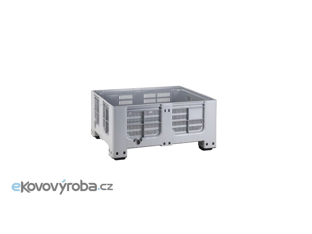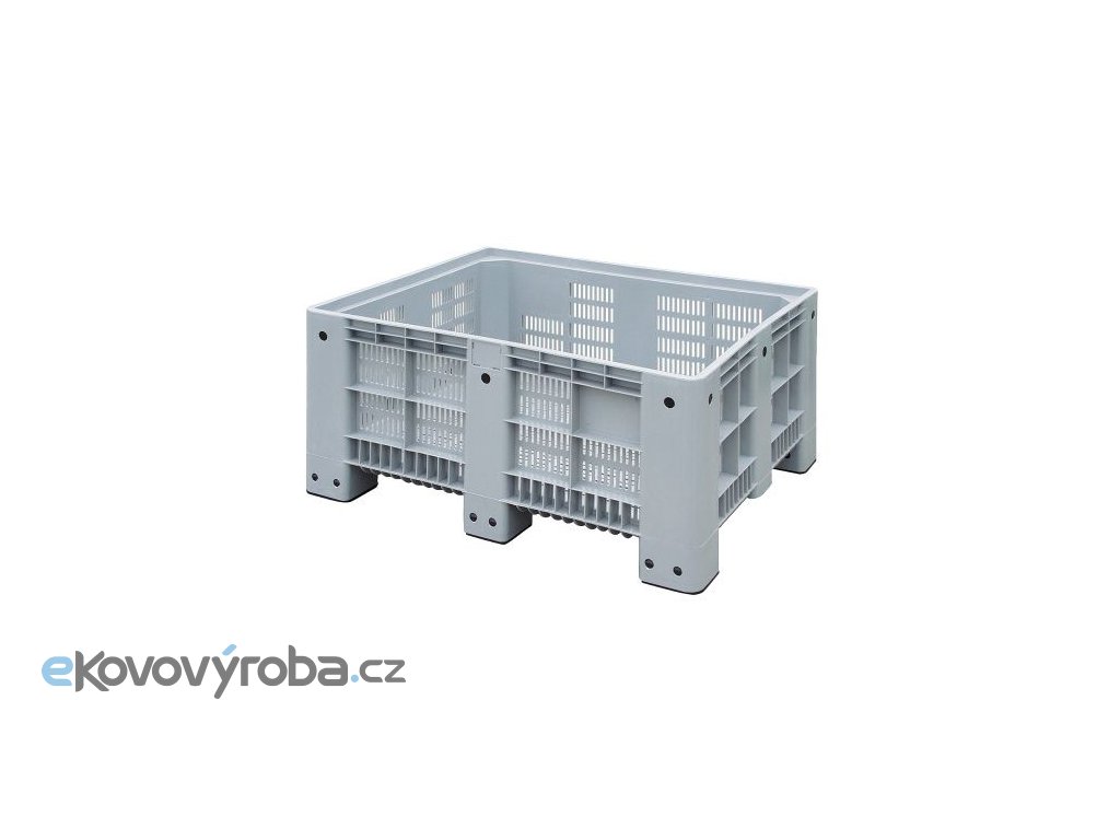 Plastový perforovaný box v šedé barvě pro potraviny. Vyrobeno z plastu Polyetylenu s vysokou hustotou (HDPE). Výrobní materiál je zdravotně nezávadný. Box je primárně vhodný pro převoz a skladování ovoce a zeleniny. Boxy jsou snadno stohovatelné. Odolné proti UV záření a změnám teplot.