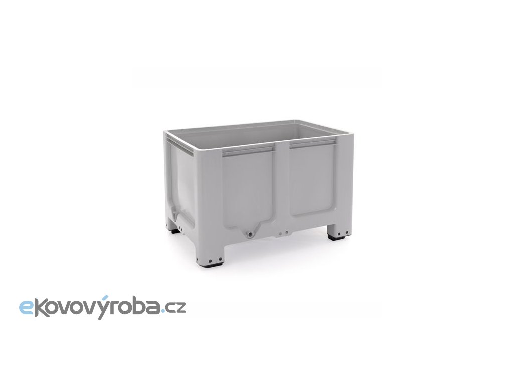 Vyrobeno z plastu Polyetylenu s vysokou hustotou (HDPE). Šedý plastový box se 4 nohami. Manipulovatelné všemi běžnými prostředky ze všech stran. Nízká hmotnost, vysoká pevnost, odolnost proti většině olejů a kyselin. Snadné čištění díky hladkým vnitřním stěnám. Stohovatelné, 100% recyklovatelné a odolné vůči UV záření. Materiál je vhodný pro styk s potravinami.