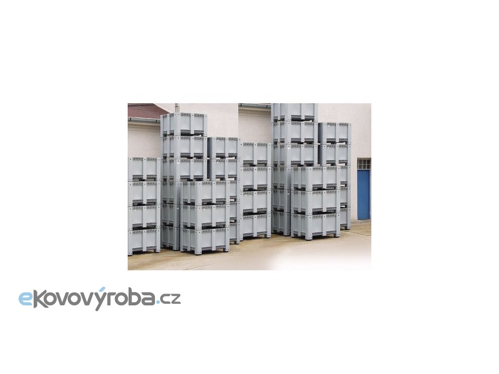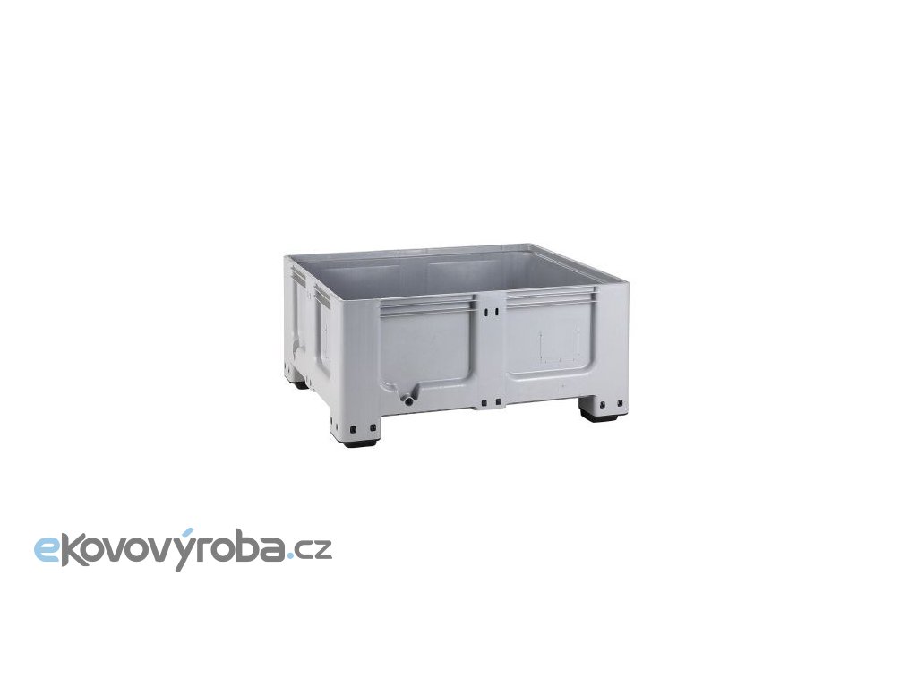 Plastový box o objemu 440 l pro průmysl. Vyrobeno z plastu Polyetylenu s vysokou hustotou (HDPE). Šedý plastový box se 4 nohami. Manipulovatelné všemi běžnými prostředky ze všech stran. Nízká hmotnost, vysoká pevnost, odolnost proti většině olejů a kyselin. Snadné čištění díky hladkým vnitřním stěnám. Stohovatelné po 10 kusech, 100% recyklovatelné a odolné vůči UV záření. Materiál je vhodný pro styk s potravinami.