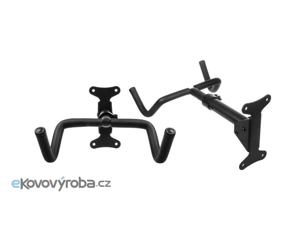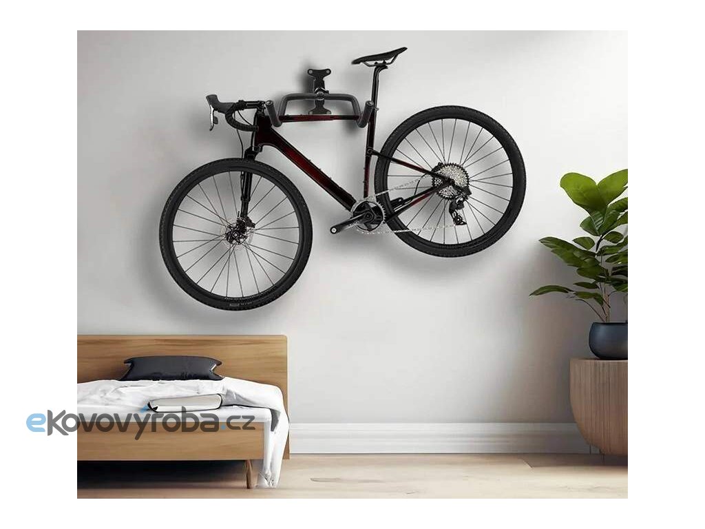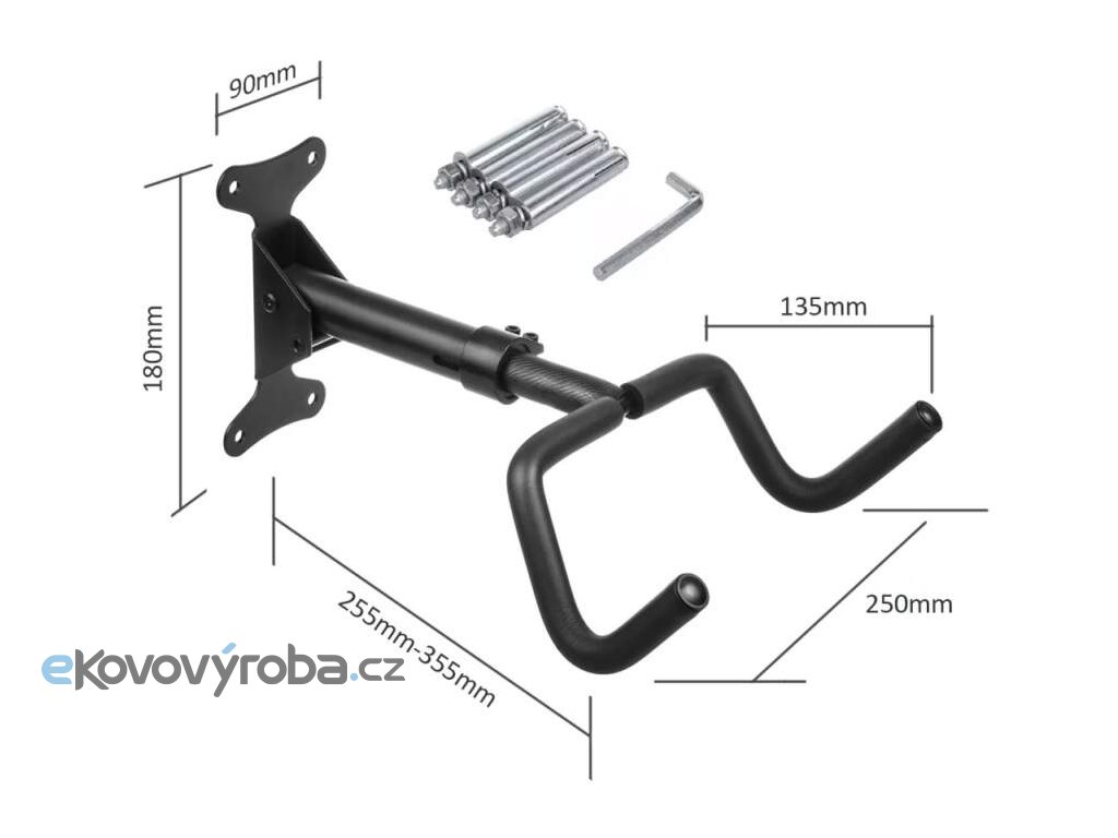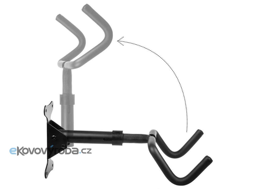 Praktický držák pro zavěšení jízdního kola na zeď, možnost zaklopení ke zdi, ocelový, závěsná část s ochranným potahem, délka 255-355 mm, nosnost 30kg