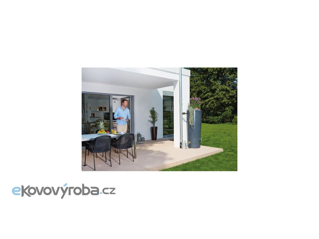 Plastový zásobník na dešťovou vodu o objemu 350 l. Vyroben z 100% recyklovaného plastu. Dekorativní zásobník na zachycení dešťové vody. Odolný vůči UV záření a vlivům počasí. Zásobník má také účel v podobě květináče. Vybaveno dvěma závity 3/4" pro snadnou instalaci kohoutku a univerzální hadice.