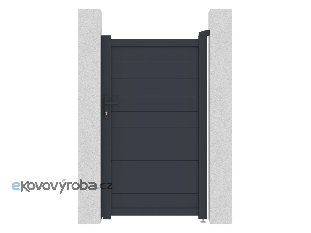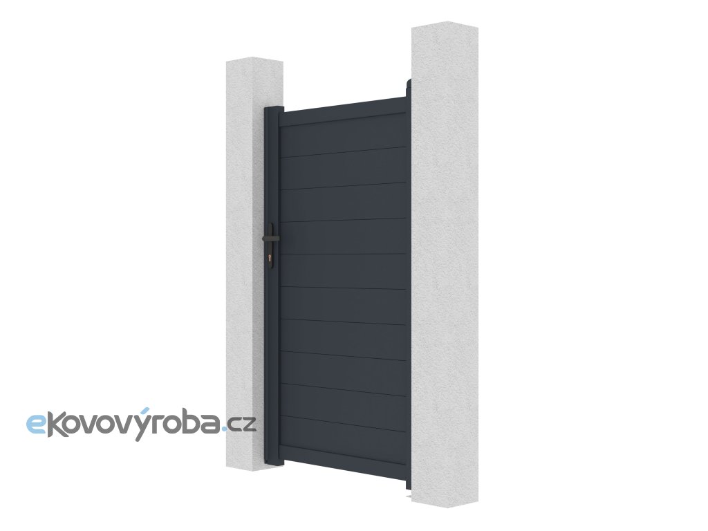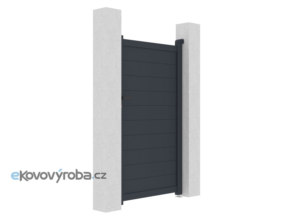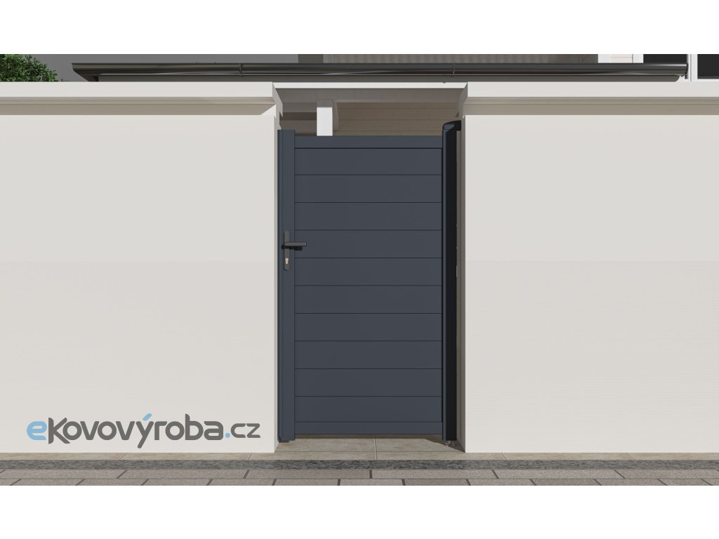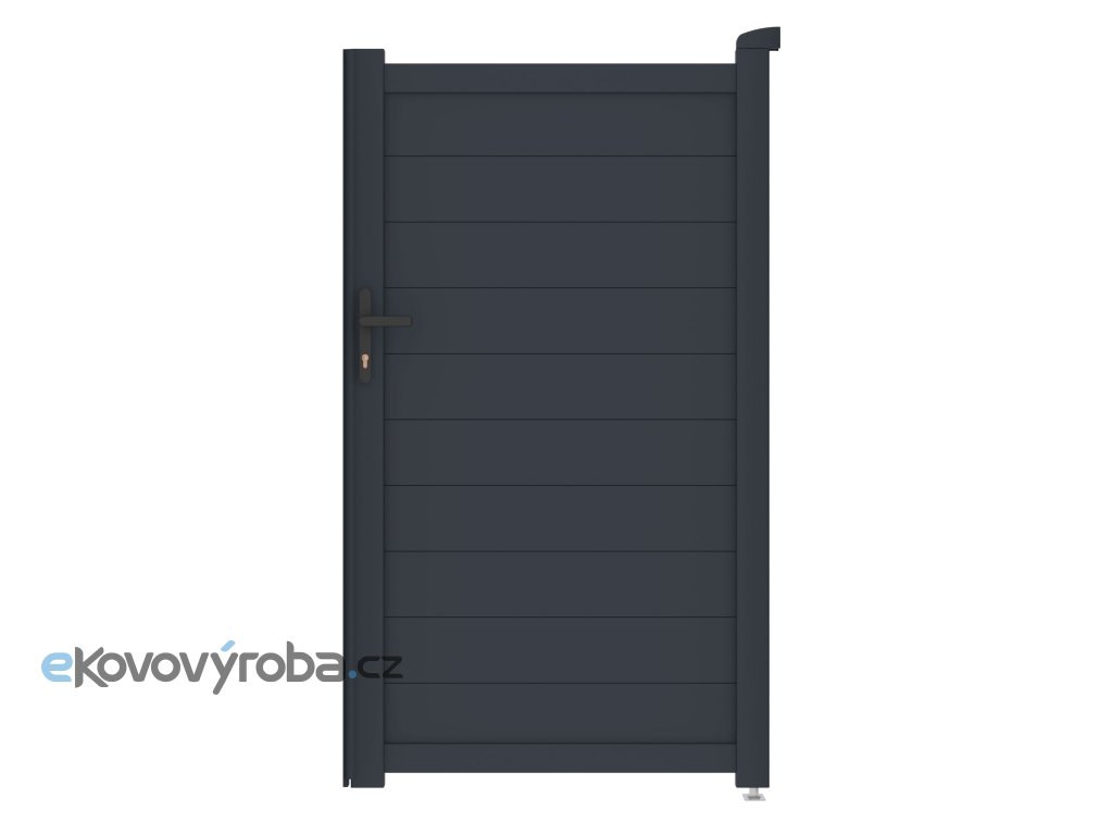 Výplň s horizontálně uloženými lamelami v atraktivním grafitovém provedení kombinuje dostatek soukromí s moderním designem, takže branka s otevíráním dovnitř bude slušet každému typu oplocené stavby.