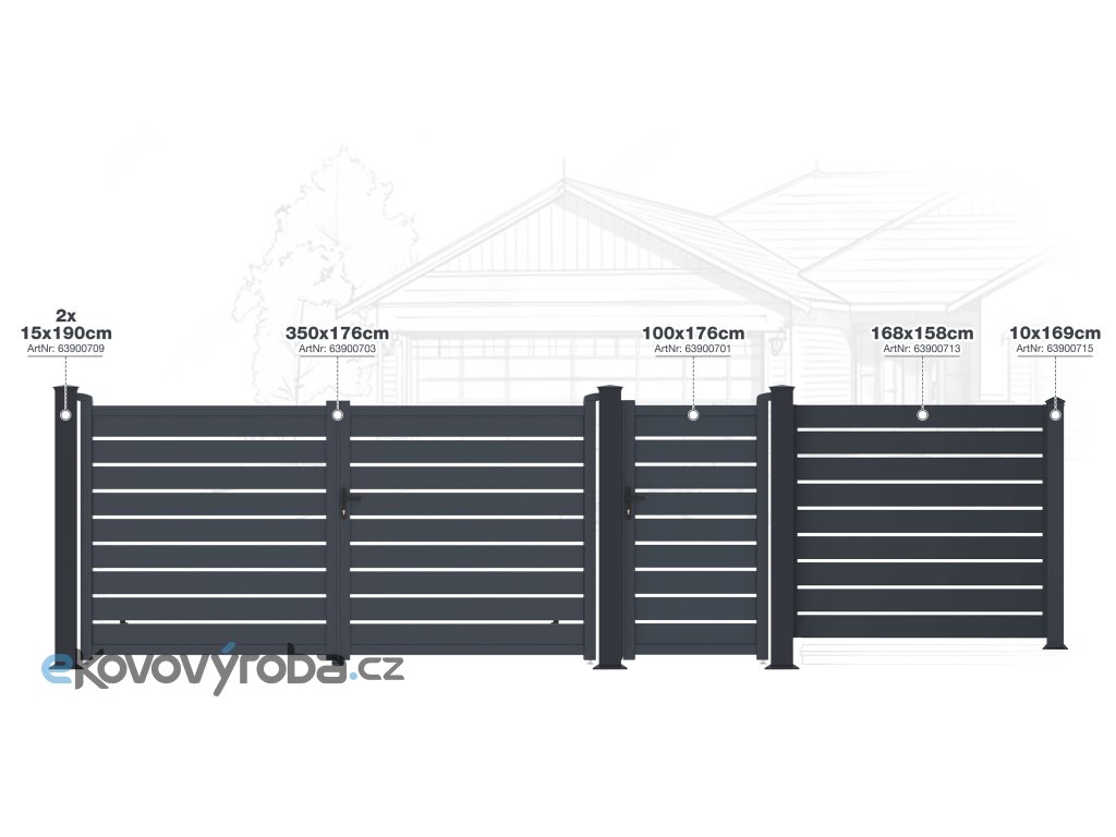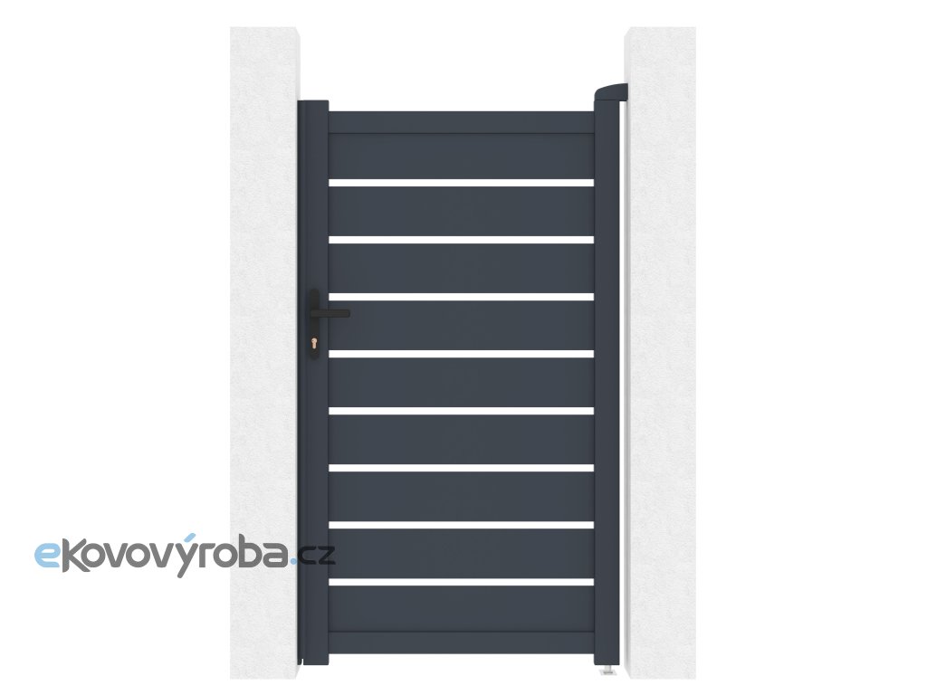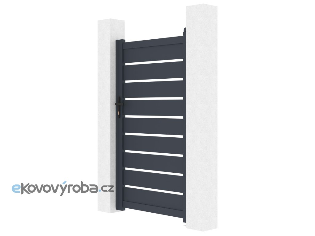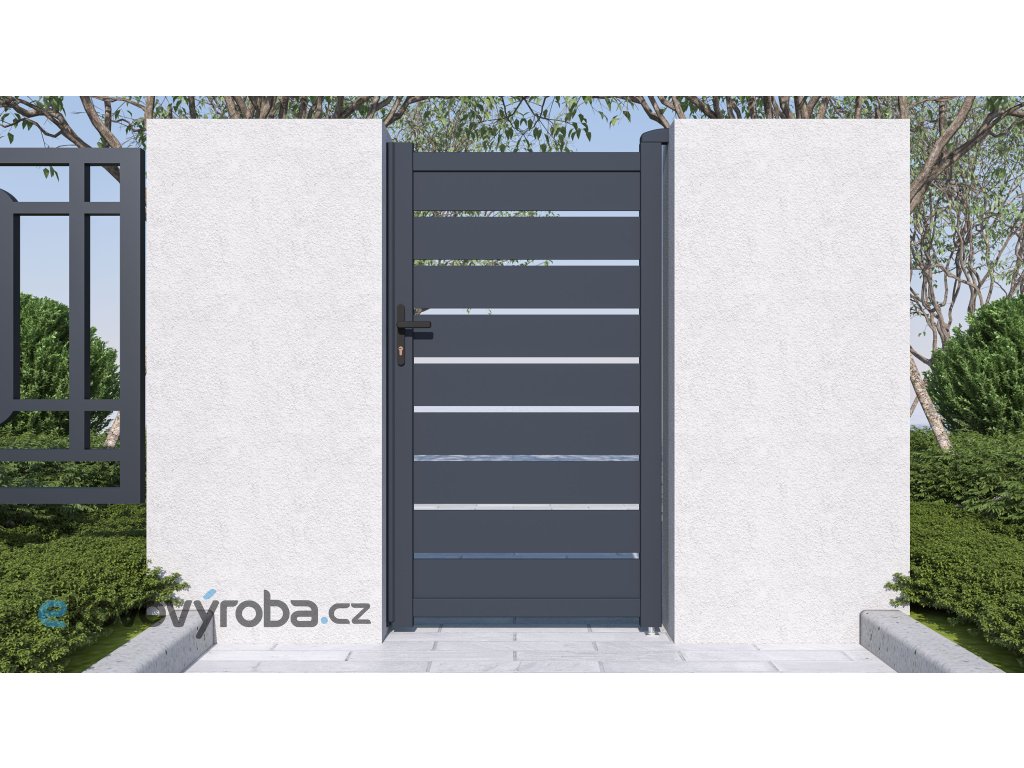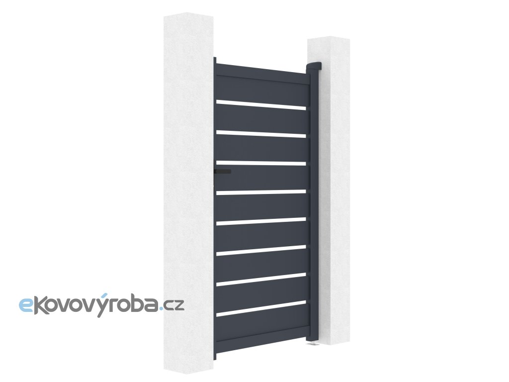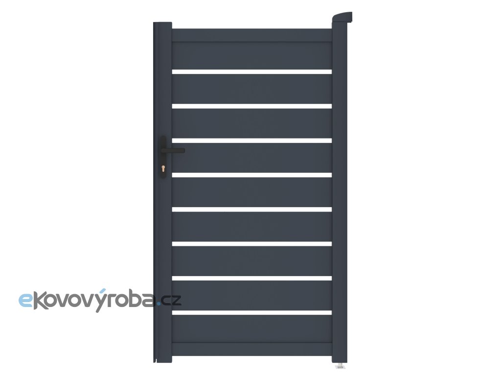 Výplň s horizontálně uloženými lamelami v atraktivním grafitovém provedení kombinuje dostatek soukromí s moderním designem, takže branka s otevíráním dovnitř bude slušet každému typu oplocené stavby.