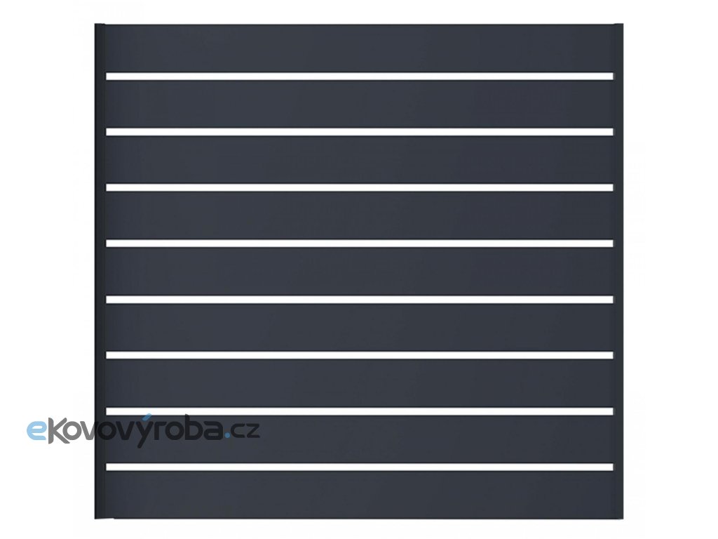 Výplň s horizontálně položenými lamelami kombinuje dostatek soukromí s moderním designem, takže plot vkusně doplní každý typ oplocené stavby.