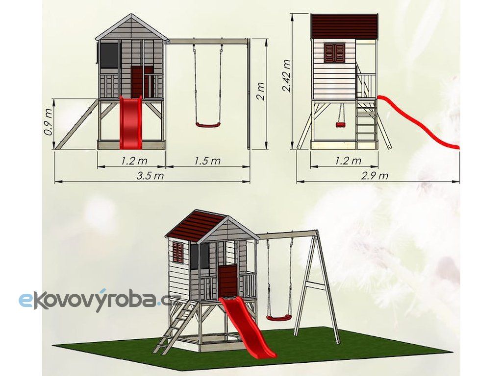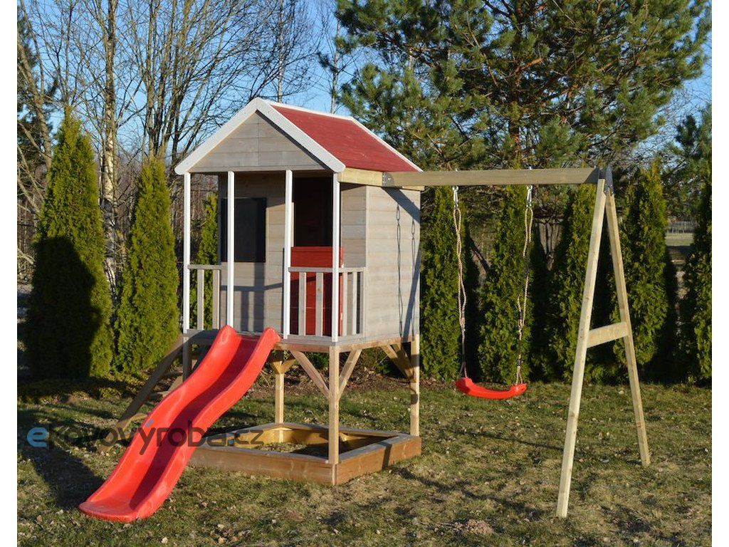Dětský dřevěný domeček Veranda s houpačkou