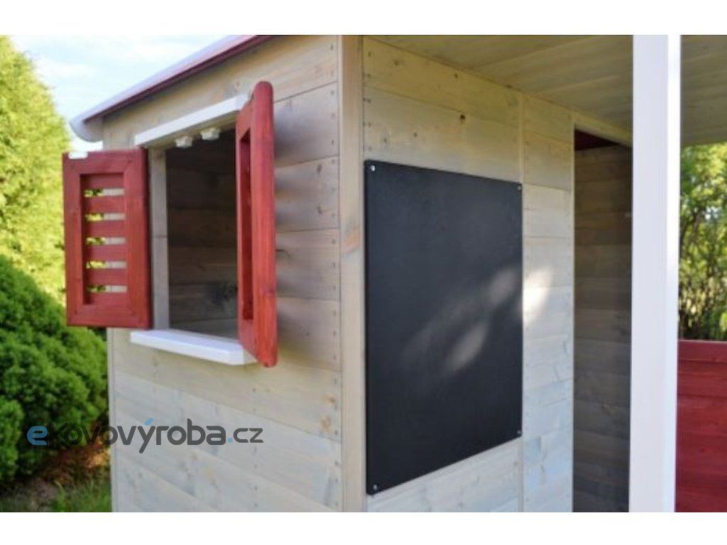 Dětský dřevěný domeček "veranda" včetně podlahy a zastřešené verandy bude skvělým doplňkem na vaší zahradě. Děti si užijí spoustu zábavy. Radost jim udělá i tabule, která je vhodná pro psaní a malování. Domeček je dodáván v rozloženém stavu z prefabrikovaných dílů včetně spojovacího materiálu. Celé stěny a podlaha, které stačí sešroubovat k sobě. Pouze střecha se sestavuje z jednotlivých prken, které do sebe zapadají. Dřevo je povrchově ošetřeno ochranným nátěrem. Obsah balení: zastřešená veranda podlaha poloviční dveře otevíratelné okenice tabule pro psaní a malování vnitřní úložný prostor ve štítu střechy vyrobeno v EU splňuje normu EN-71-1.2.3.8. rozměry (DxŠxV): 120 x 120 x 155 cm pro děti od 3 let nosnost: 50 kg materiál: dřevo (druh dřeva: Severský smrk)