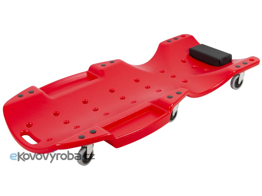 Plastová konstrukce zajišťuje dostatečnou pevnost a nosnost až 150 kg. Lehátko je vybaveno dvojicí odkládacích prostor na šroubky a drobné ruční nářadí, které tak budete mít při práci neustále u sebe. Ergonomicky tvarovaná konstrukce ve spojení s podhlavníkem zajistí pohodlné provádění servisních prací.
