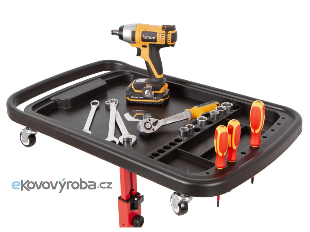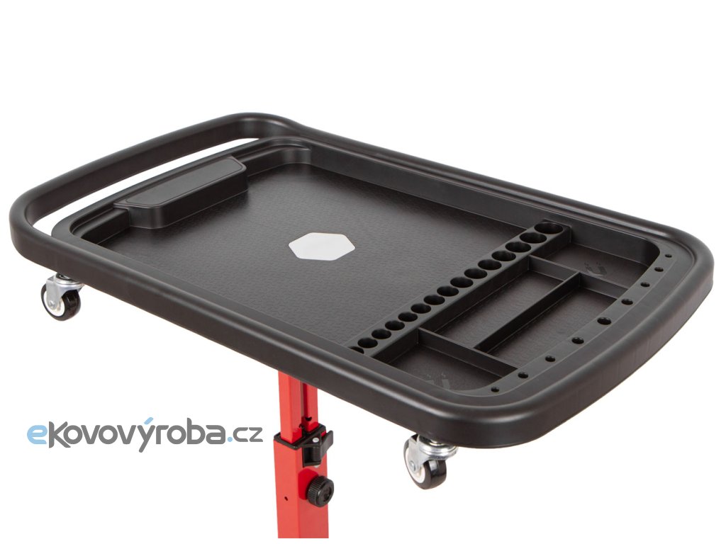 Pojízdný odkládací montážní stolek pro organizaci nářadí a drobných součástek při práci v dílně, garáži i mimo ni.