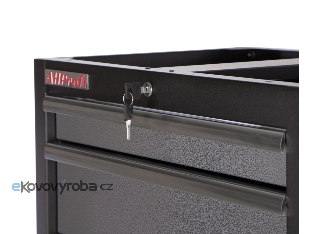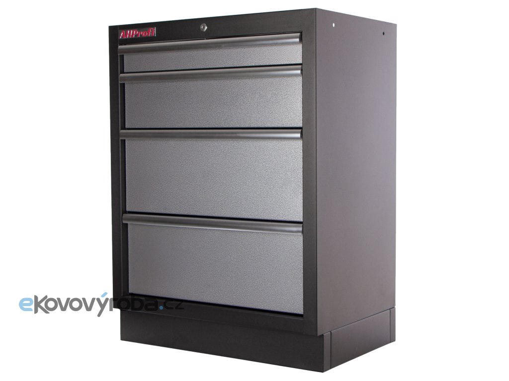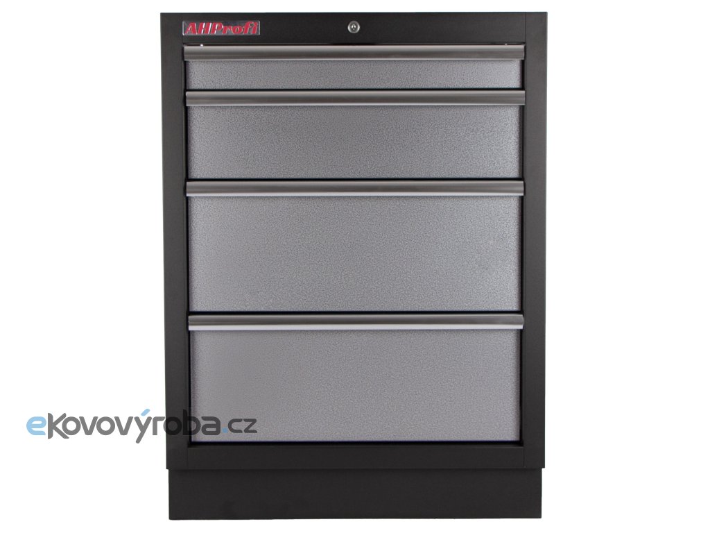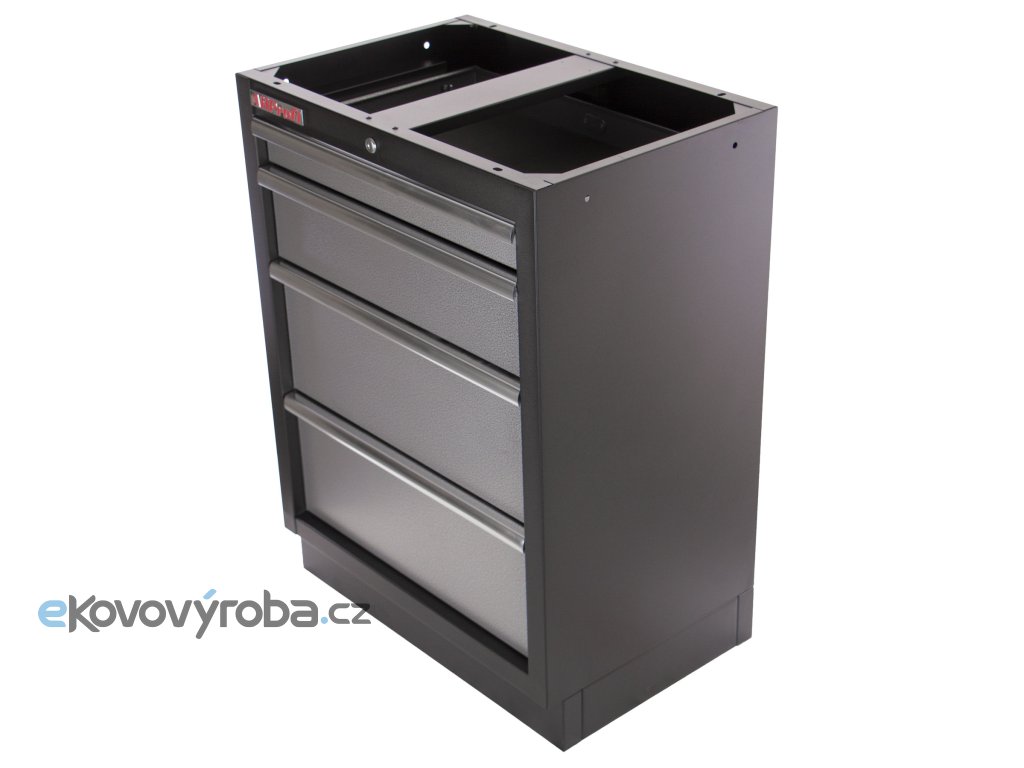 Celokovová dílenská skříň se 4-mi zásuvkami zajišťuje maximální přehled, úložnou kapacitu a odolnost i v náročném provozu.